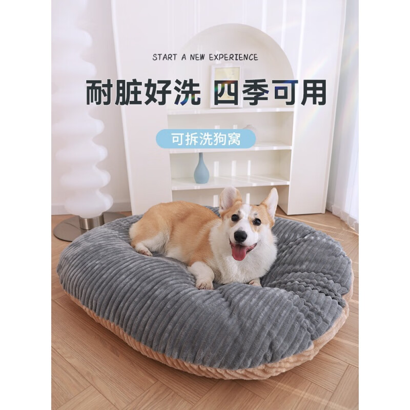 华元宠具(hoopet)狗垫子狗窝四季通用狗狗睡垫宠物可拆洗睡觉用冬季保暖宠物窝 割条绒狗垫子灰卡其 (5斤体型)S45*35CM