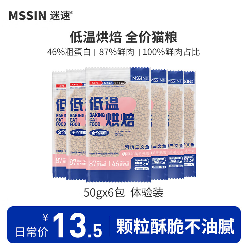 迷速低温烘焙猫粮300g成猫幼猫全阶段增肥发腮全价猫粮试吃装50g*6袋