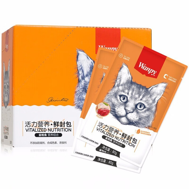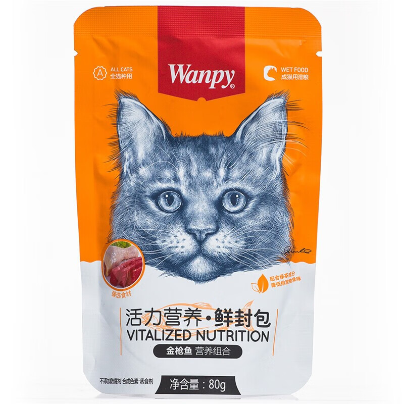 顽皮(Wanpy)猫咪鲜封包 宠物猫粮肉粒包 猫湿粮妙鲜包整盒装 金枪鱼80g*10袋