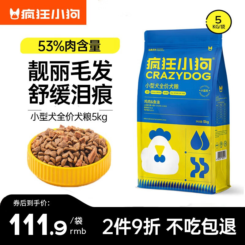 疯狂小狗狗粮小型犬幼犬成犬小蓝包泰迪比熊博美柯基通用肉粒双拼狗粮 【肉粒双拼】小型犬通用粮10斤