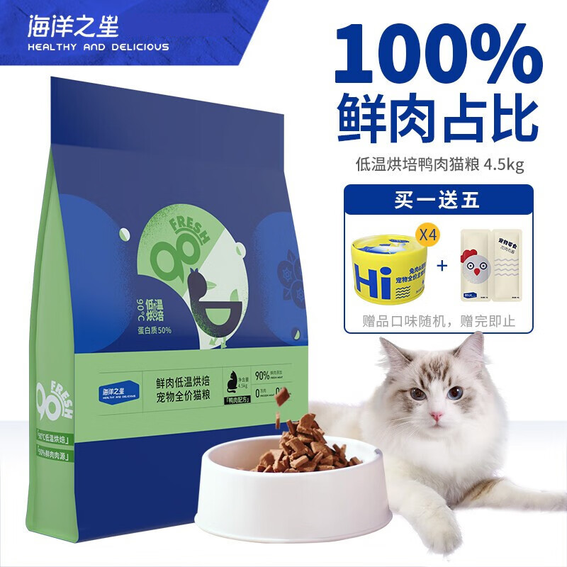 海洋之星(fish4dogs)猫粮 低温烘焙鲜肉猫粮 成猫幼猫全价猫干粮 【现货】鲜鸭肉 全价猫粮 4.5kg