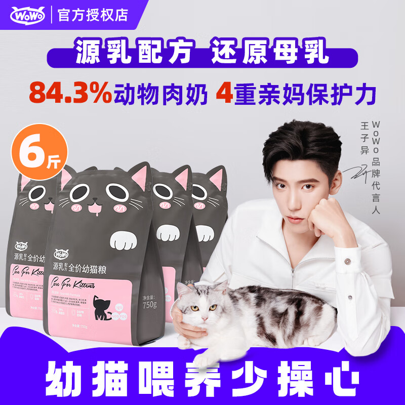喔喔(WOWO)WoWo喔喔猫粮全价幼猫粮无谷物宠物食品源乳配方奶糕粮 6斤