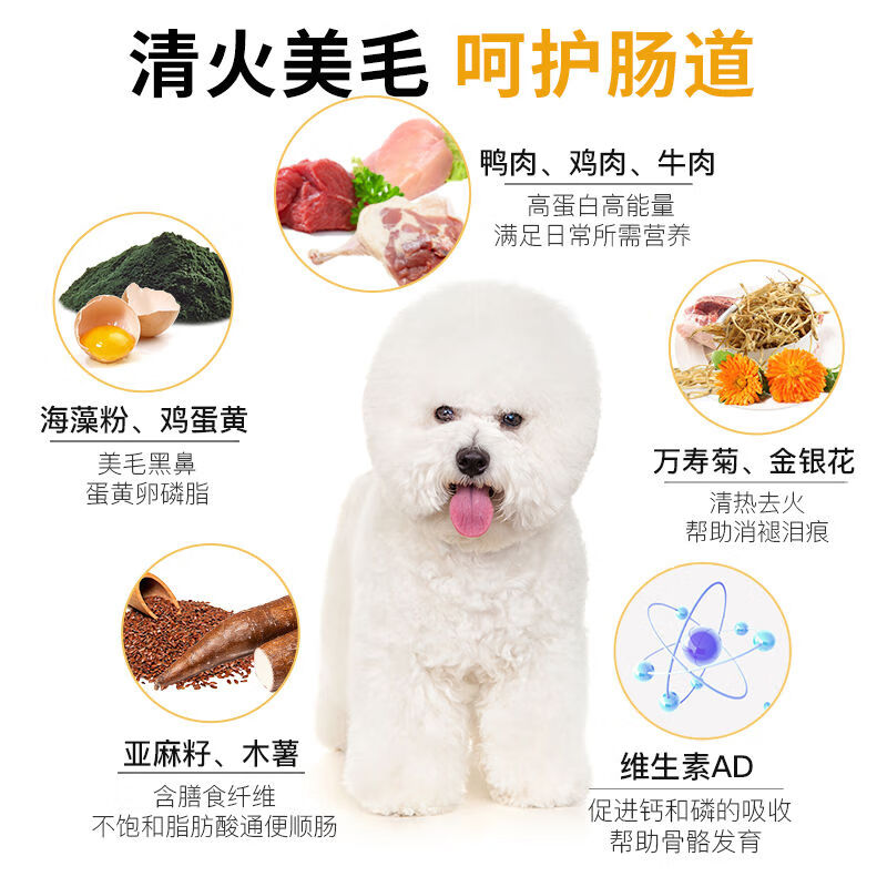 海洋之星(fish4dogs)汪爸爸专用比熊狗粮奶糕幼犬成犬小型犬美毛去泪痕无谷配方5斤装 单包5斤