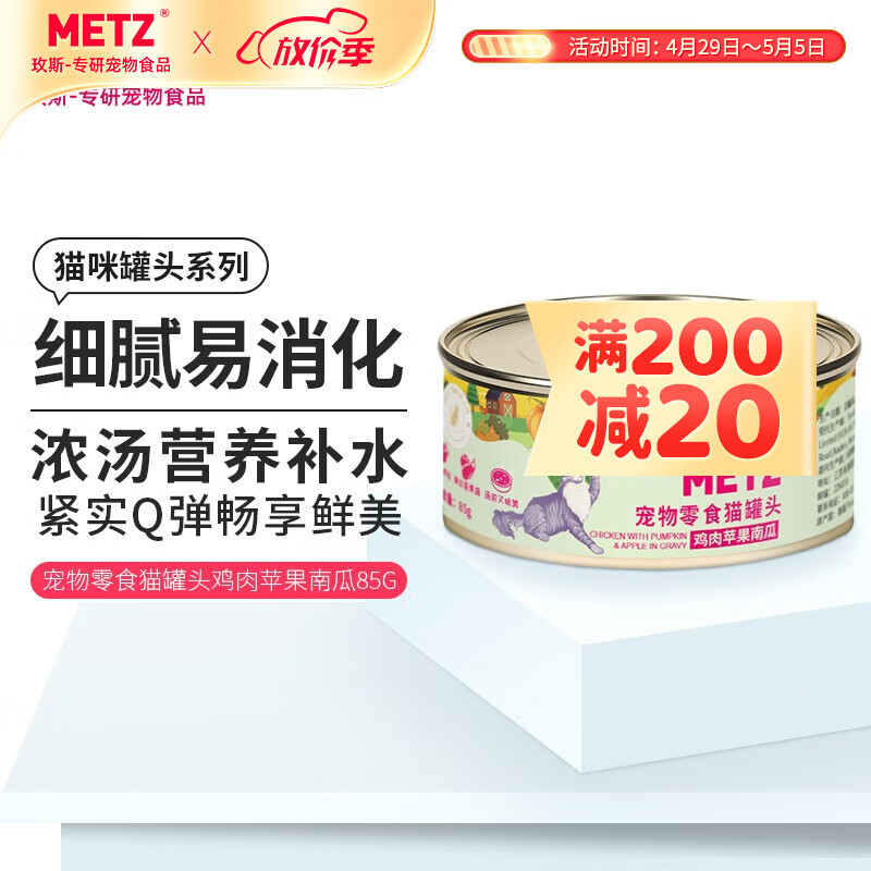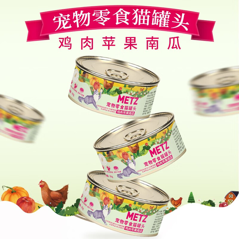 玫斯(metz)猫罐头慕斯罐幼猫成猫专用增肥发腮营养补水补钙宠物零食湿粮 鸡肉苹果南瓜 85g*24罐