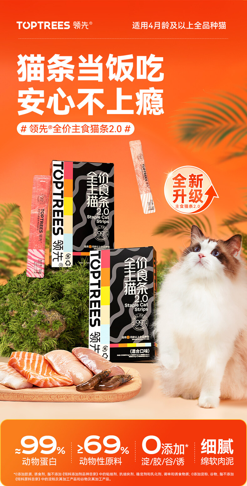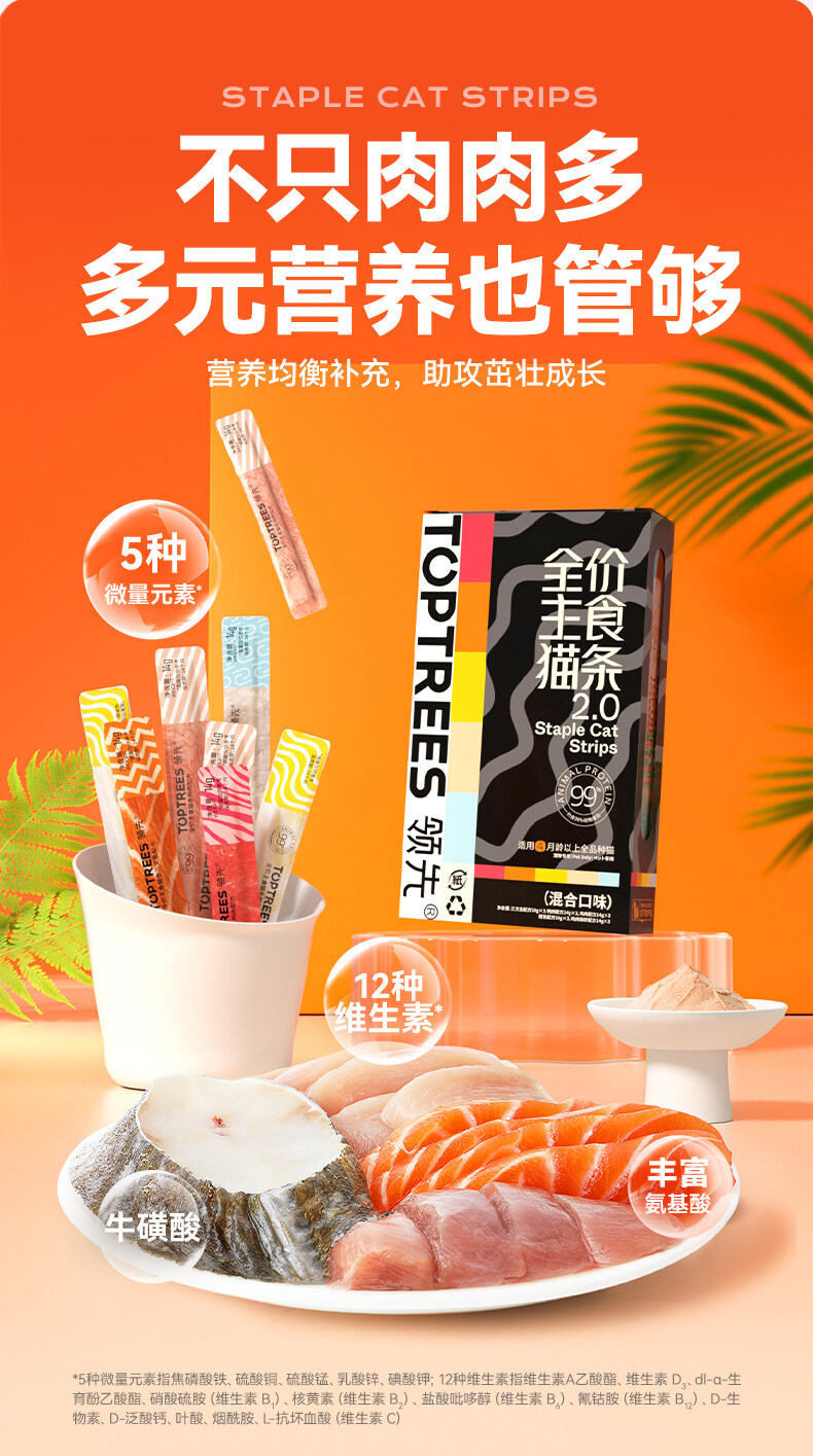 领先猫条 猫咪全价主食猫条湿粮零食14g*15条
