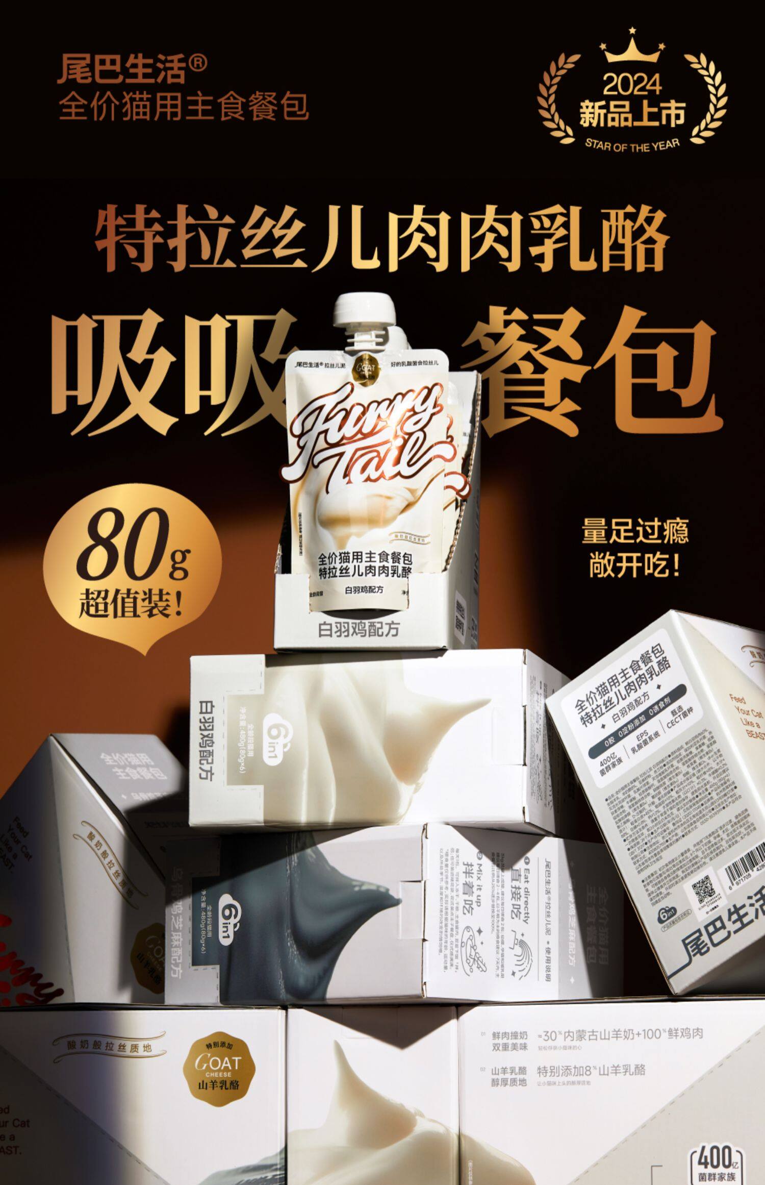 尾巴生活 黑白泥吸吸酱全价猫用主食餐包80g