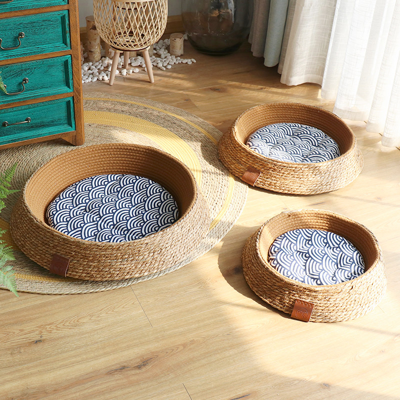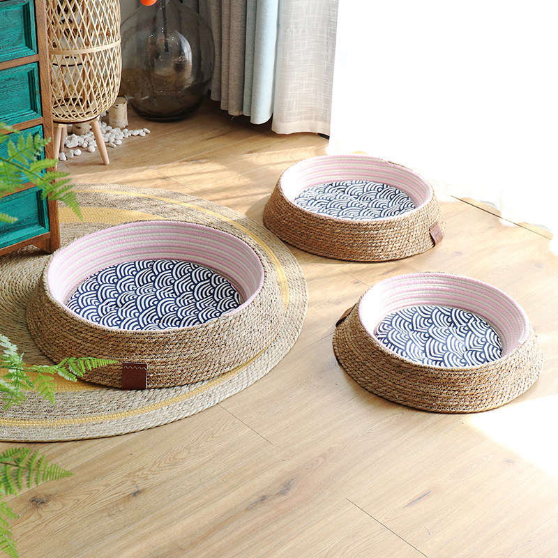 新款藤编猫窝四季通用宠物网红猫窝垫耐抓日式猫房子狗窝透气舒适