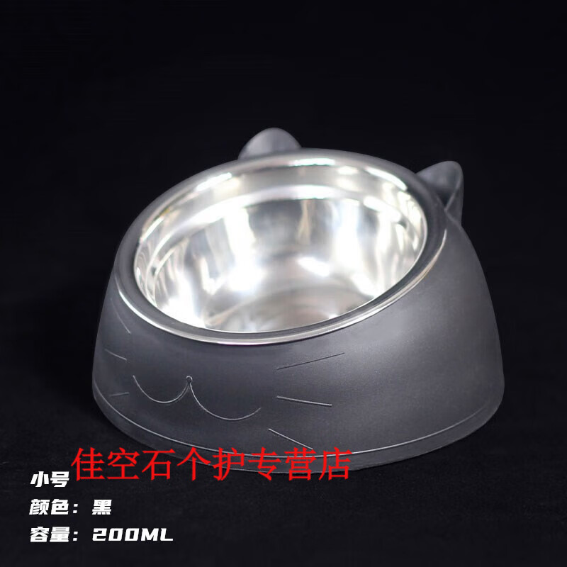 PETIO TOGETHER YOUR PRECIOUS LIFE宠物不锈钢保鲜双碗食具护颈斜口猫咪食盆水碗大小号狗碗犬猫通用 黑色小号容量200ML 犬猫通用