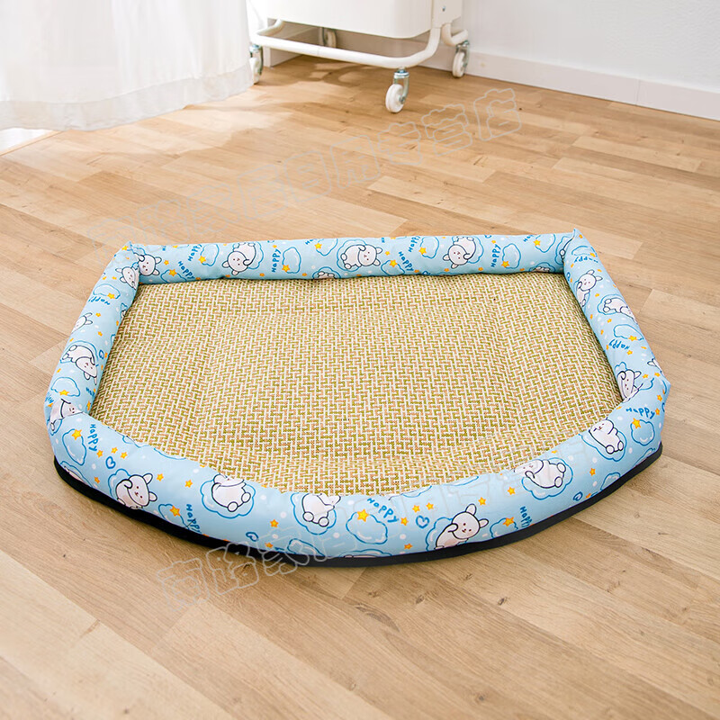 波奇多 狗窝四季通用夏天凉窝狗垫子小型犬夏季泰迪猫窝凉席家用睡觉猫 D字围挡凉席(云朵兔子) S:45*35c/m(建议体重3斤内)