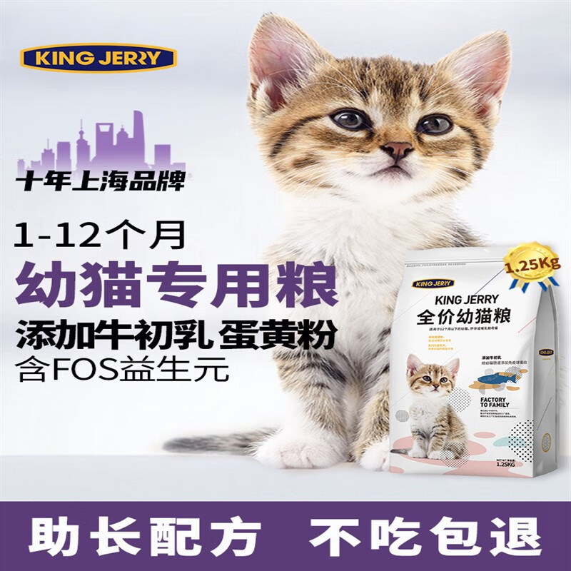 小猫猫粮猫崽幼猫1-4月奶猫增肥发腮奶糕幼猫粮1-12月2.5斤 1.25kg 猫粮净含量 鱼肉味全价幼猫【添加牛初乳】 猫羊奶粉100g