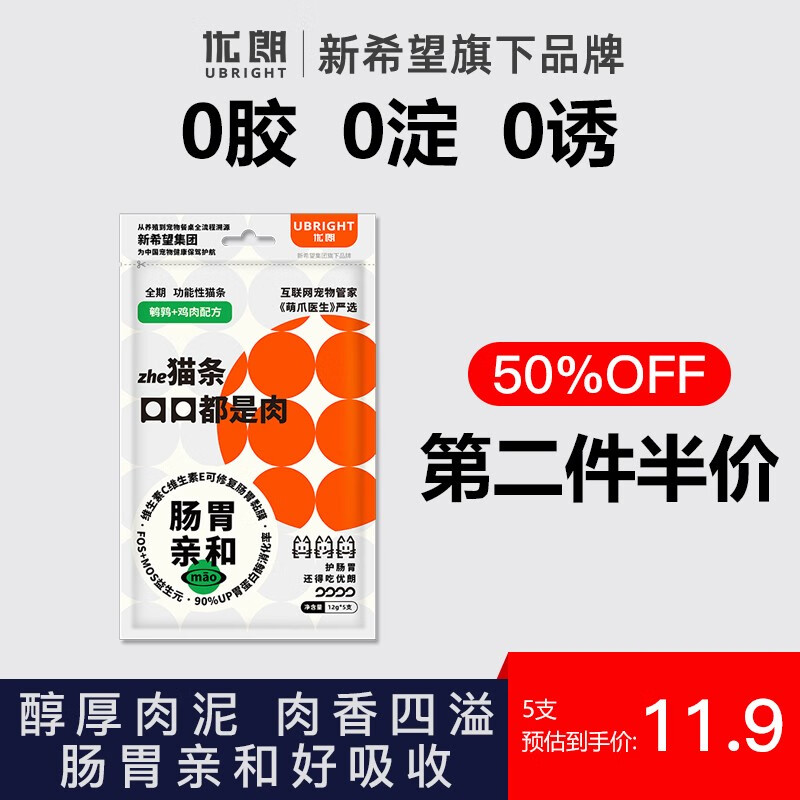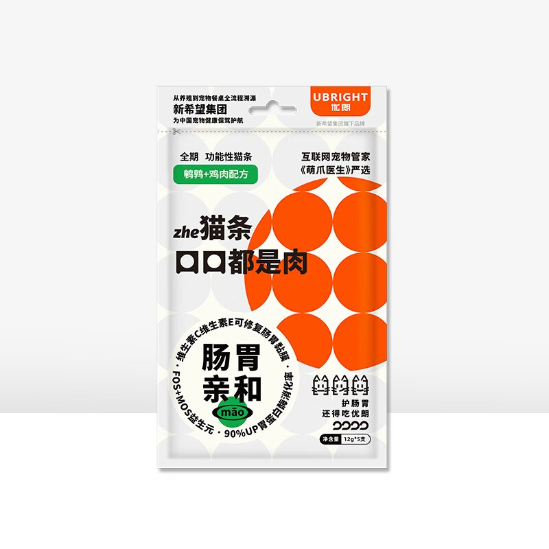 优朗新希望优朗猫条肠胃亲和猫零食营养成幼猫妙鲜湿粮小零食5支 鸡肉鹌鹑口味 5支