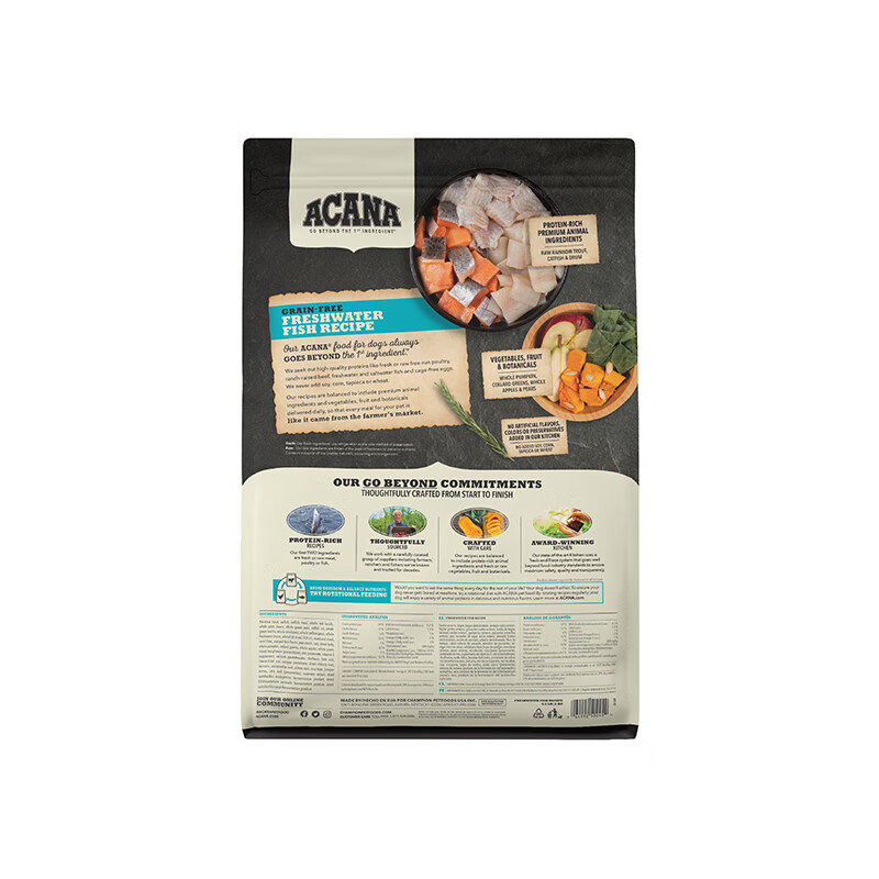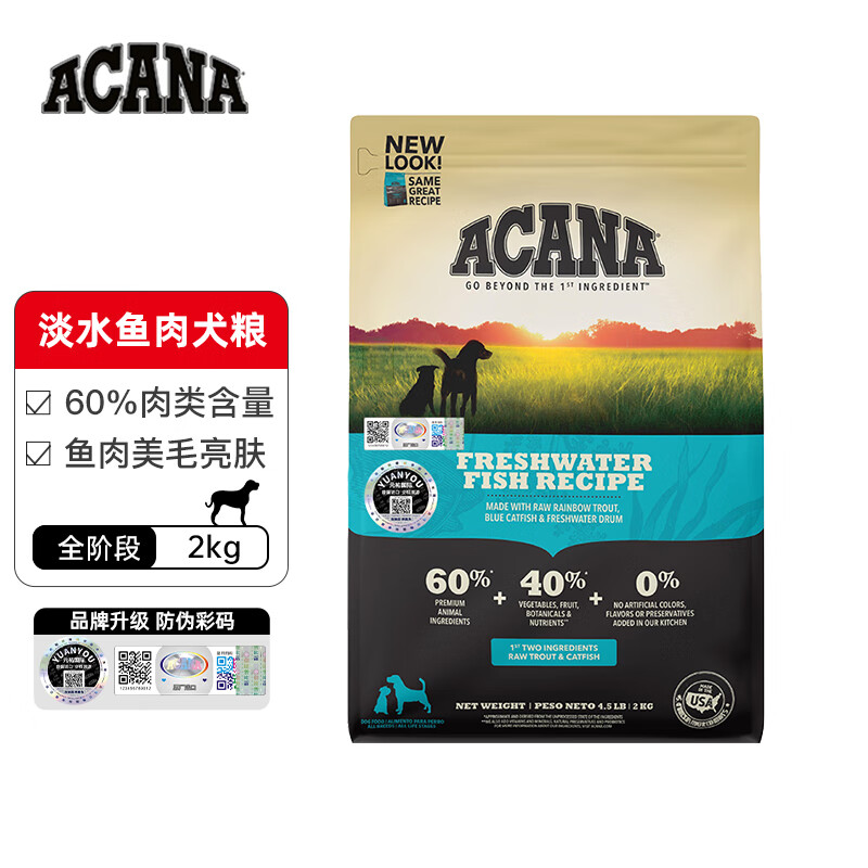 ACANA爱肯拿淡水鱼肉犬粮成犬幼犬全阶段美毛亮肤通用高蛋白营养金毛狗粮2kg美国进口