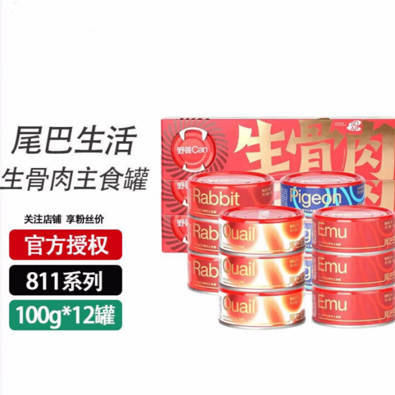 尾巴生活(FURRYTAIL)raw811生骨肉主食罐猫罐头零食湿粮包猫咪成幼猫营养发腮 811鸸鹋/鹌鹑/兔/鸽子 100g*12