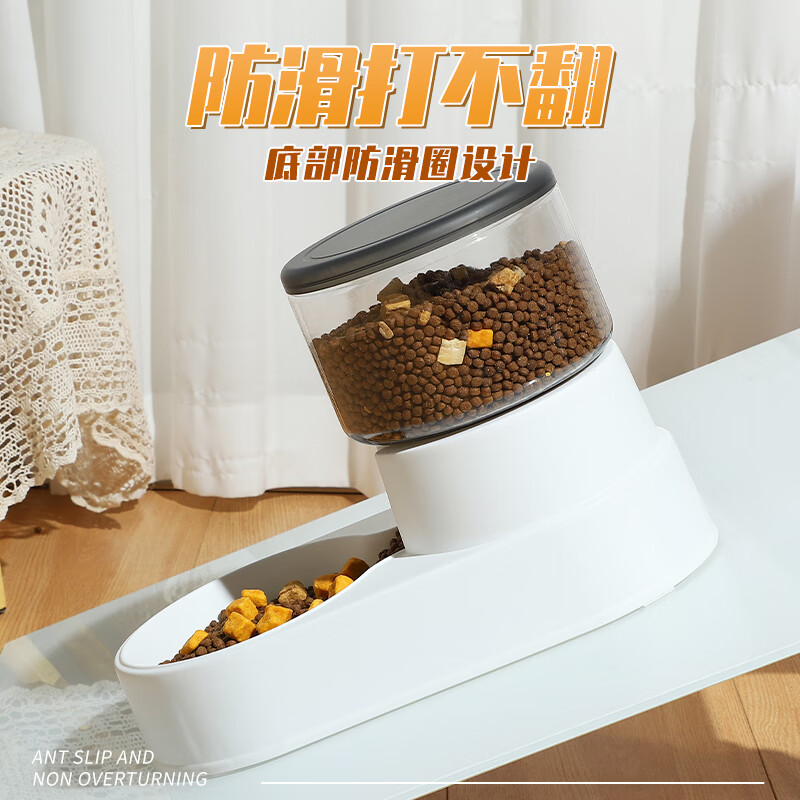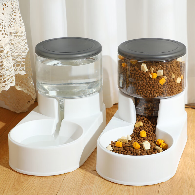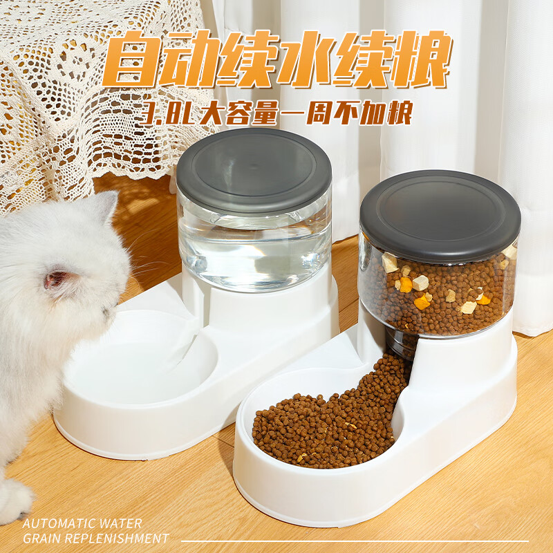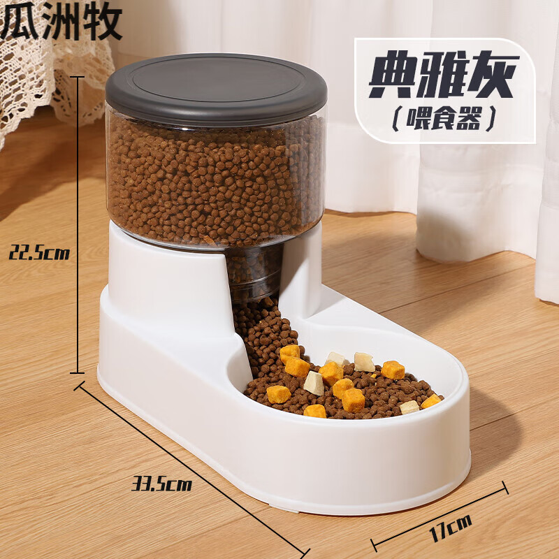 瓜洲牧猫咪饮水机自动喂食器猫碗不插电宠物猫咪用品 新款典雅灰喂食器-3.8L超大容量
