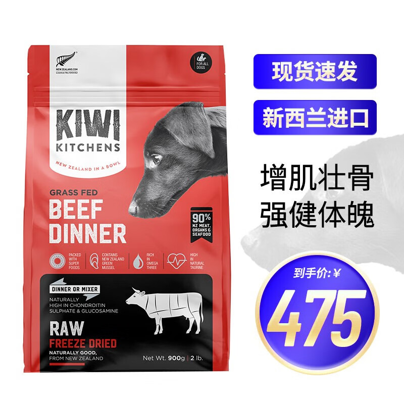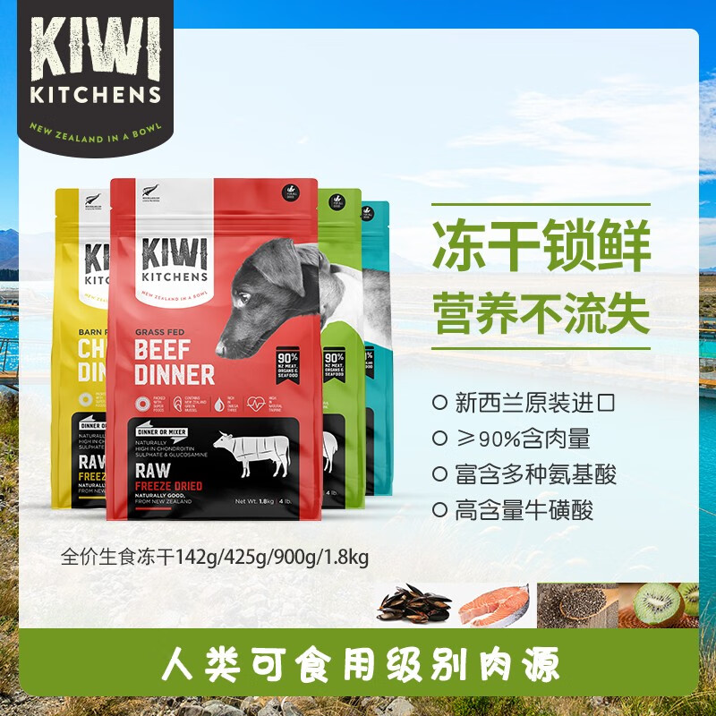 KIWI KITCHENS新西兰原装进口狗粮 多口味选择成幼犬通用冻干犬主粮 牛肉味(犬)900g