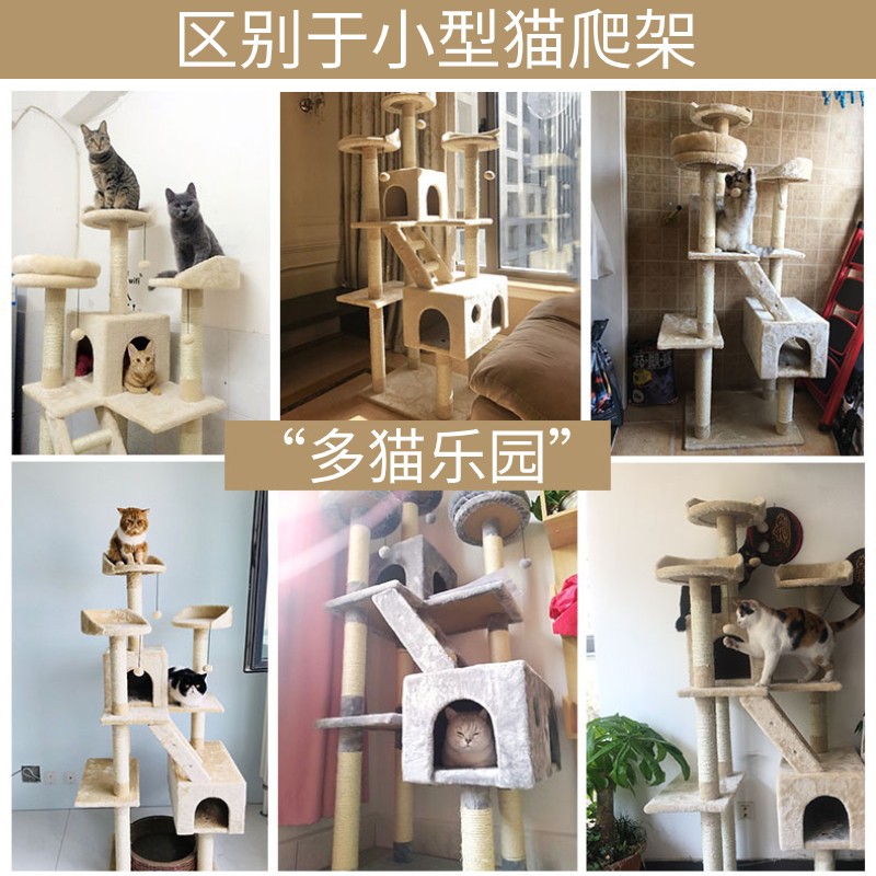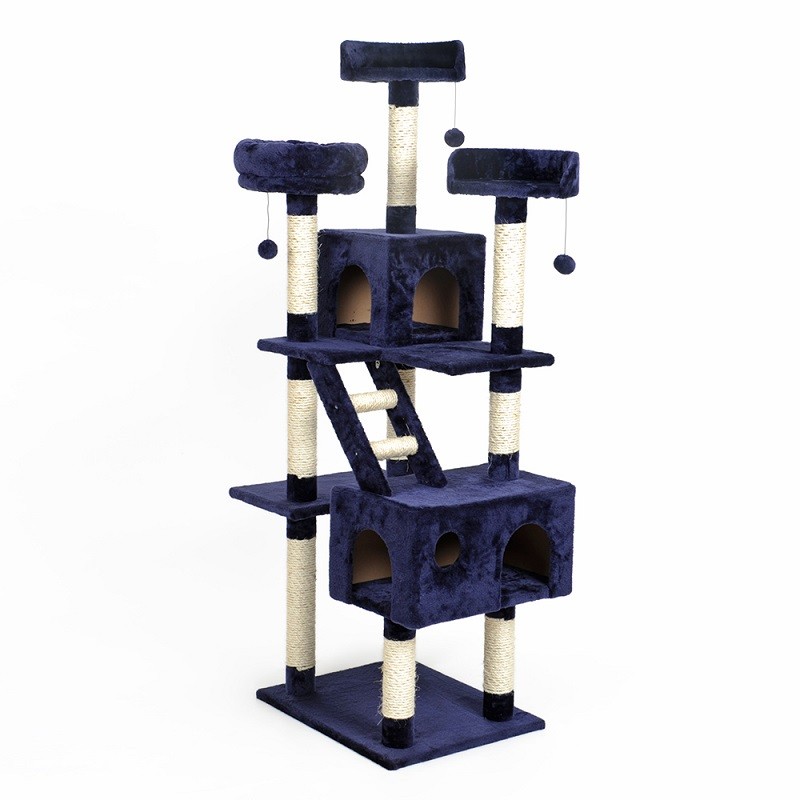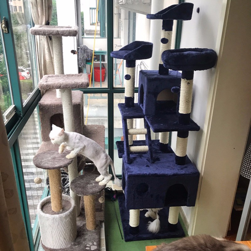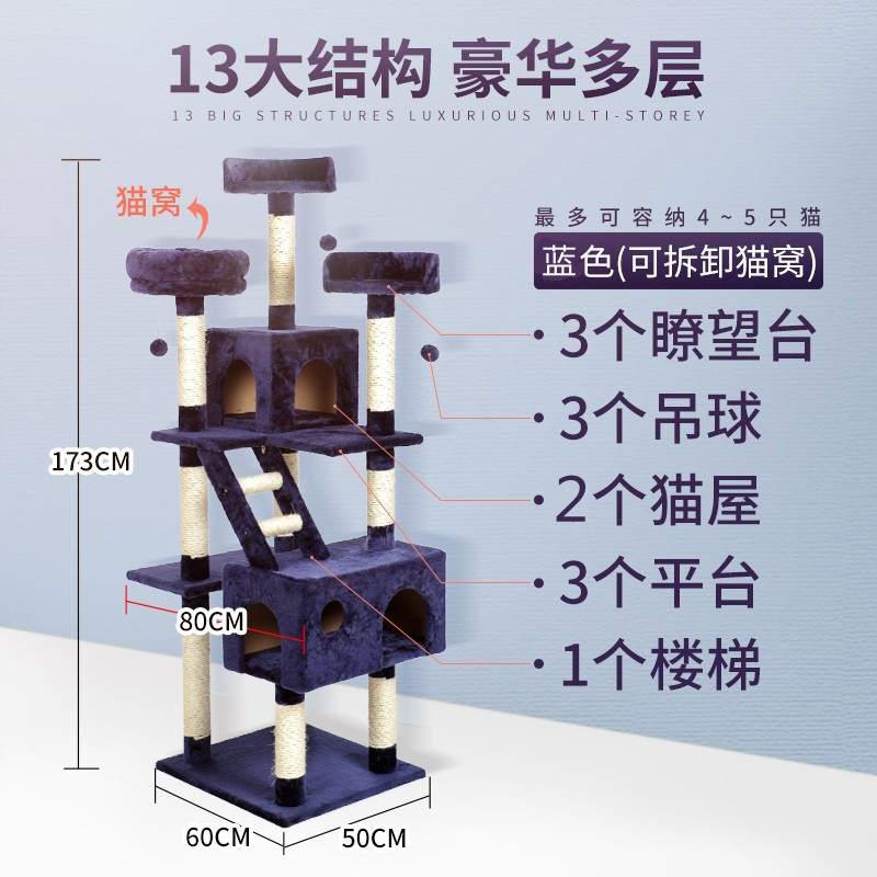 【1.7米加固五层】华元宠具猫爬架猫窝一体大型猫架子通天柱猫抓柱猫树猫跳台剑麻猫抓板窝猫玩具用品 蓝色 豪华加固五层1.7m 带窝