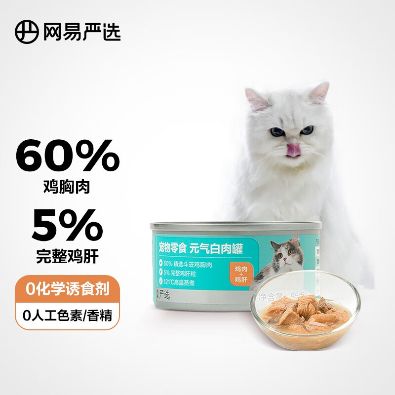 网易严选元气白肉罐头 猫湿粮猫零食宠物食品金枪鱼白肉猫罐头多种口味选 斗笠鸡胸肉 鸡肝85g*1罐