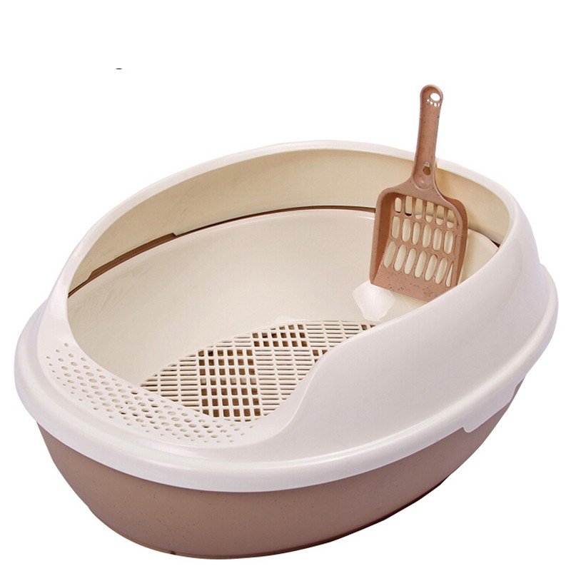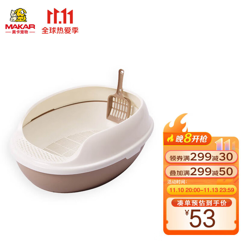 美卡 猫砂盆膨润土砂型猫厕所便盆 中号半封闭踏板防外溅猫沙拉屎盆猫咪用品 -咖啡色
