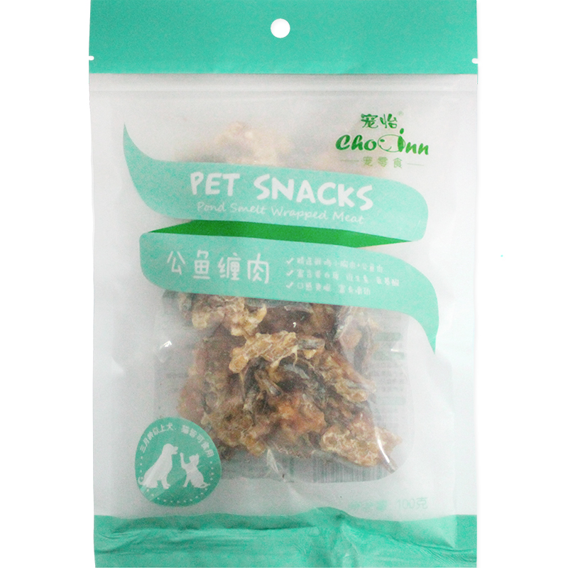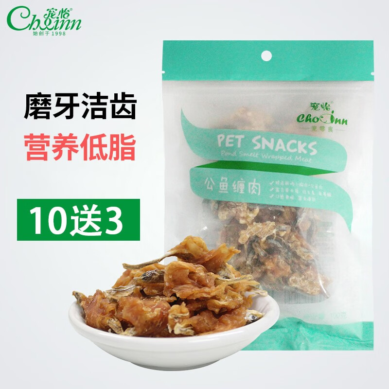 宠怡狗狗零食公鱼缠肉小鱼干鸡肉条三明治泰迪金毛磨牙棒洁齿幼犬软丝训犬奖励 公鱼缠肉100g