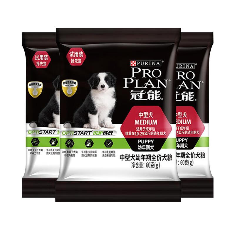 冠能(PRO PLAN)中型犬幼犬期全价犬粮60g*3 试用装不售卖