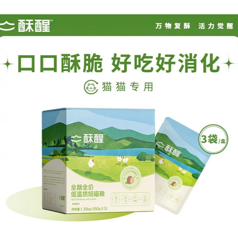 姬卉酥醒低温烘焙猫粮鲜肉无谷成猫幼猫全价全阶段1.35kg 鸡肉 尝鲜装】