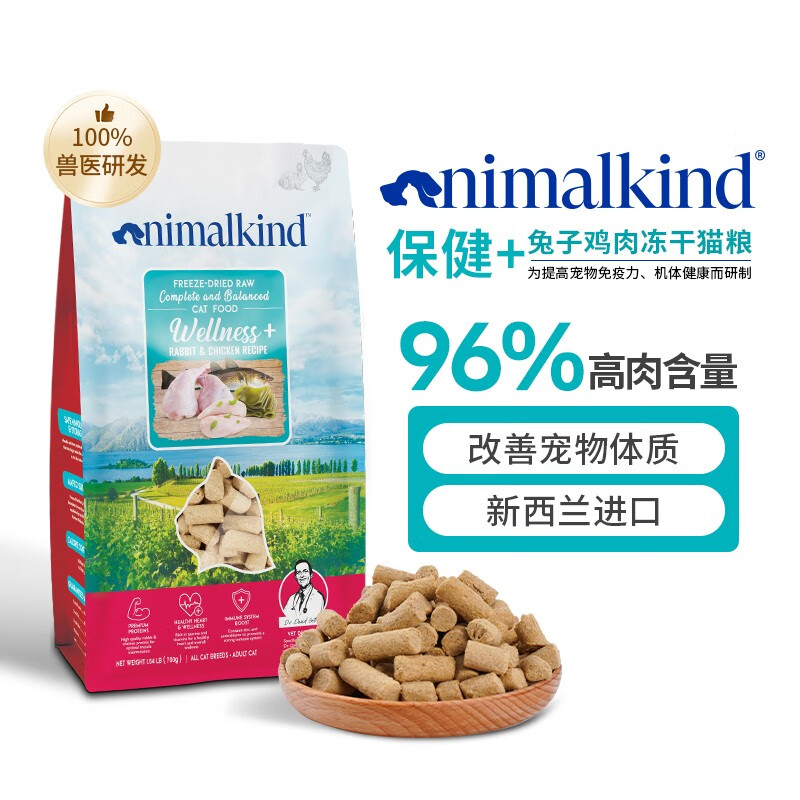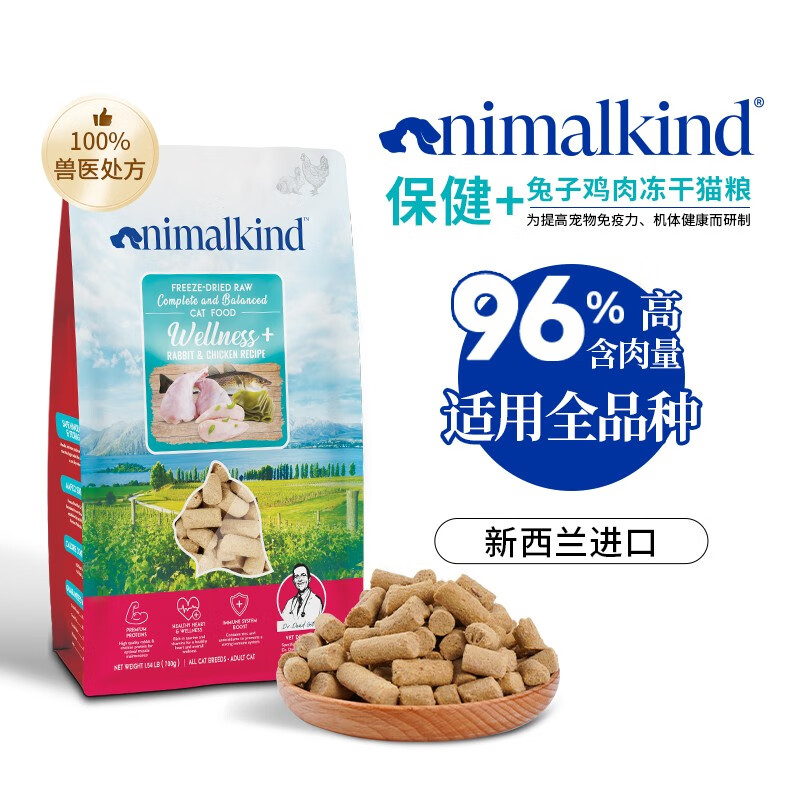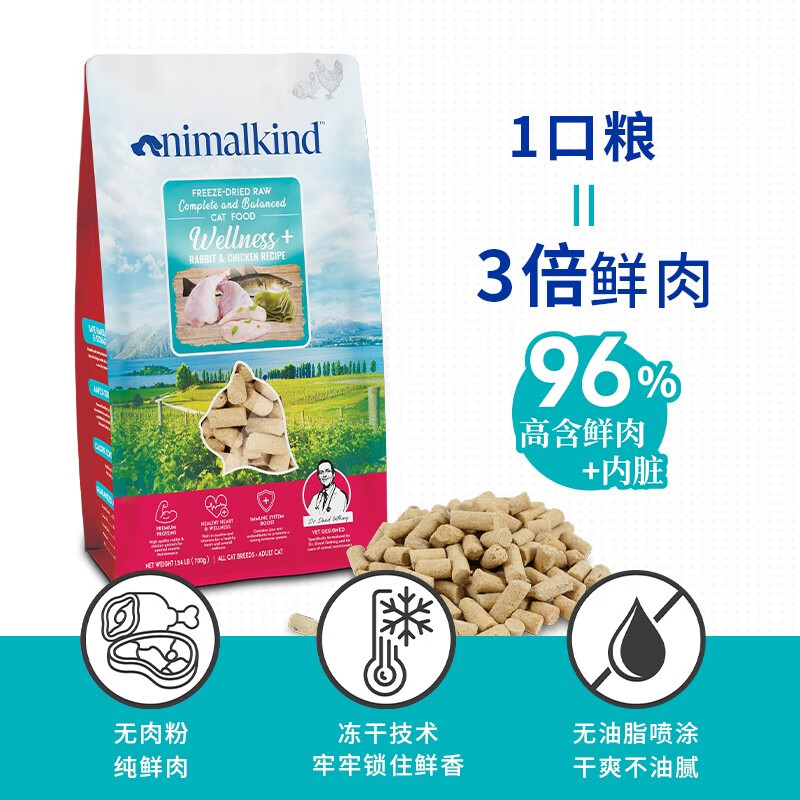 animalkind AK 冻干生骨肉猫粮 新西兰进口兔肉鸡肉宠物主粮幼猫成猫无谷粮 兔肉鸡肉配方【227g】