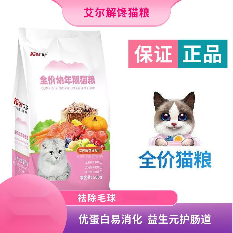 艾尔室内解馋幼猫粮一斤装全价通用型小猫咪粮小包装美短英短增肥 无套餐 解馋幼猫5斤