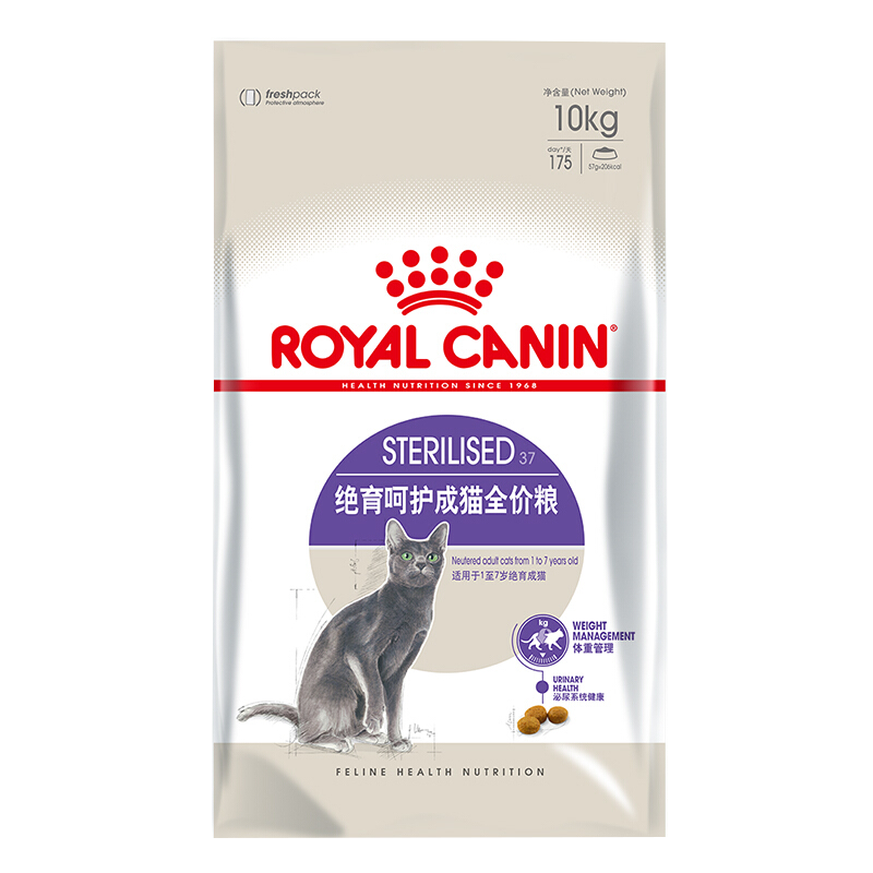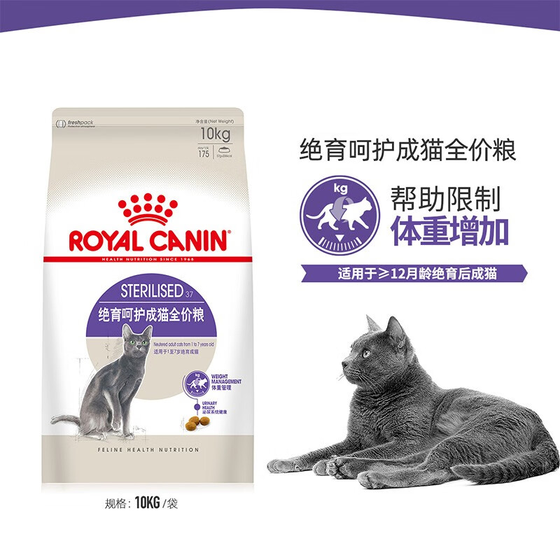 ROYAL CANIN 皇家猫粮 SA37绝育呵护成猫猫粮 全价粮2kg 体重管理 泌尿系统健康 SA37绝育呵护成猫粮 全价粮10kg