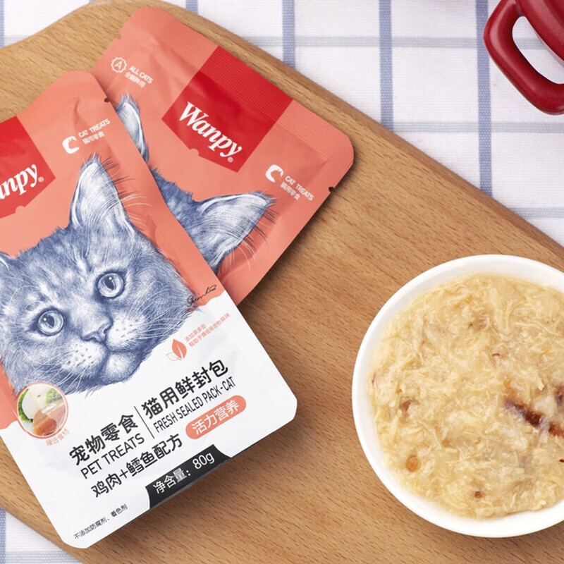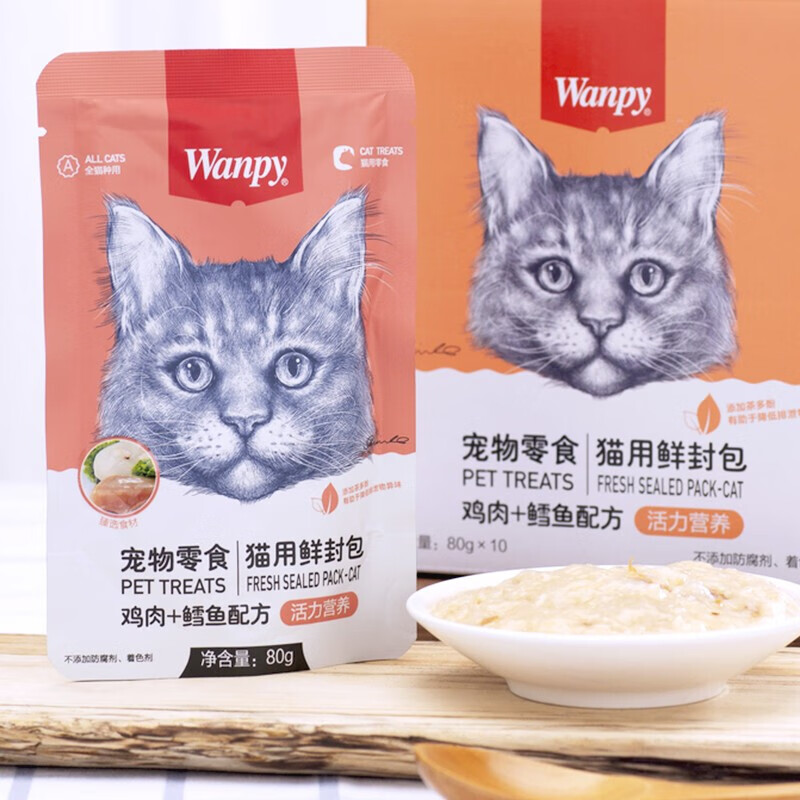 顽皮(wanpy)猫咪鲜封包活力营养宠物猫粮肉粒包猫湿粮猫罐头整盒 鸡肉 鳕鱼80g*10