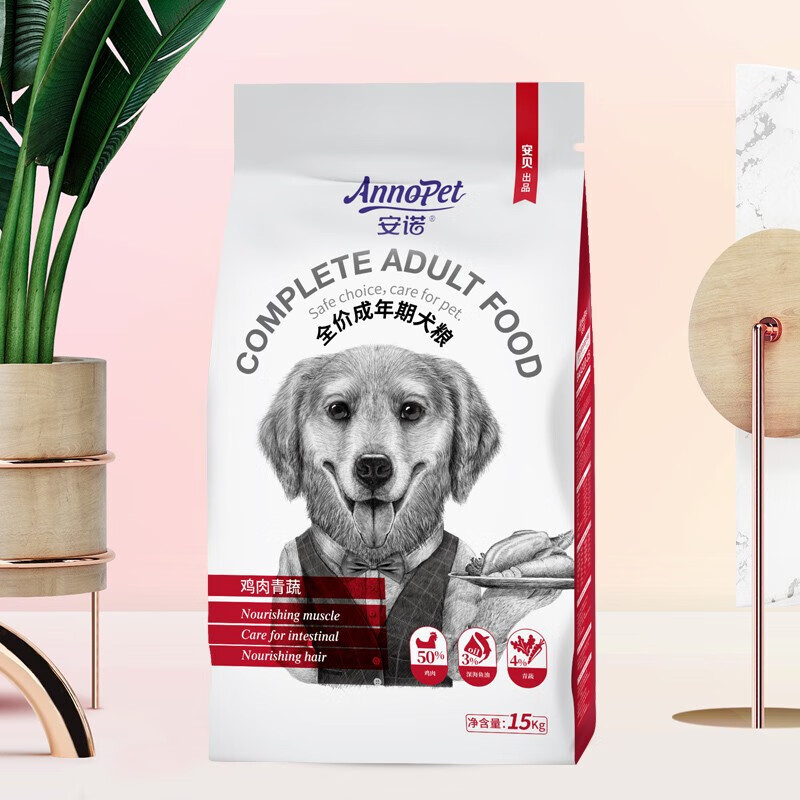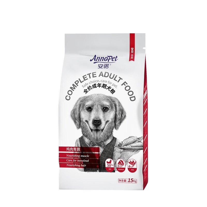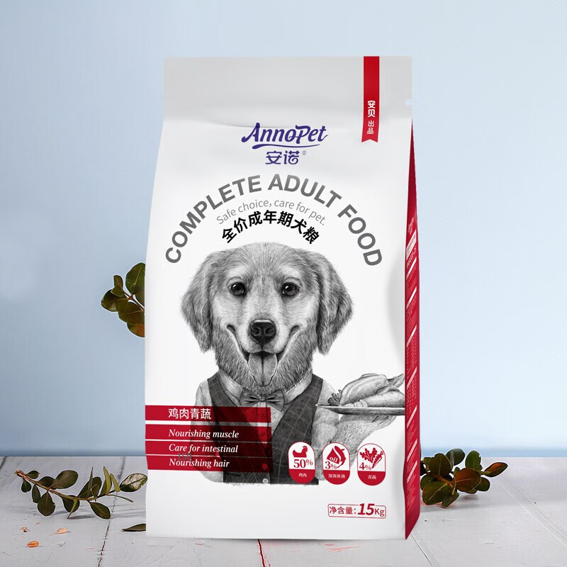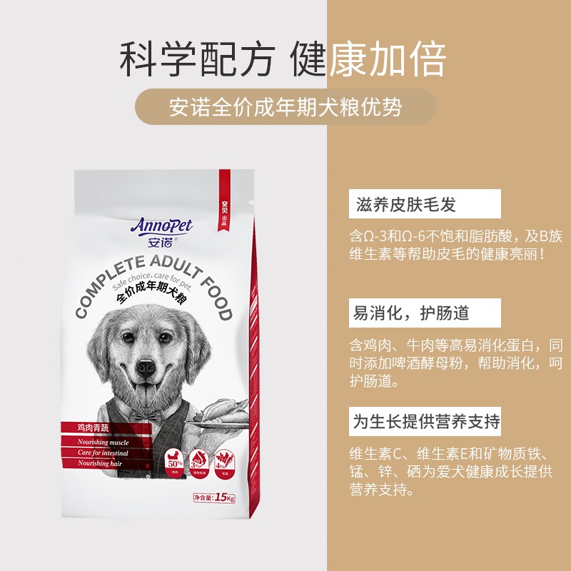 安贝(Auspice)狗粮成犬全价泰迪金毛小中大型犬狗粮全犬种通用成犬粮 安诺鸡肉青蔬15KG