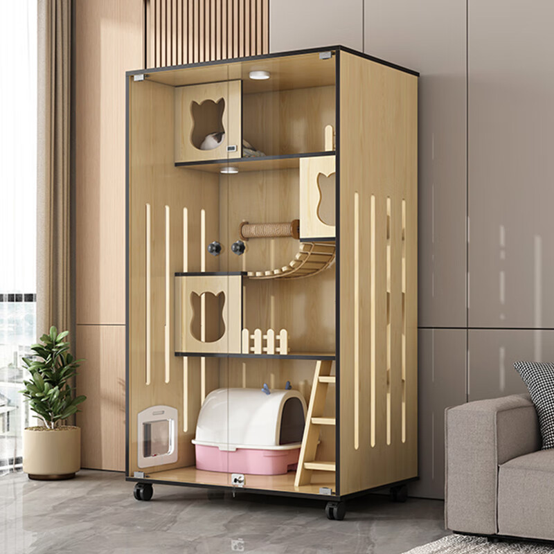 小米城堡 猫别墅家用猫笼猫柜子室内猫屋猫舍木质大空间猫窝全景 【深色】90*60*60 自行安装 送货上门
