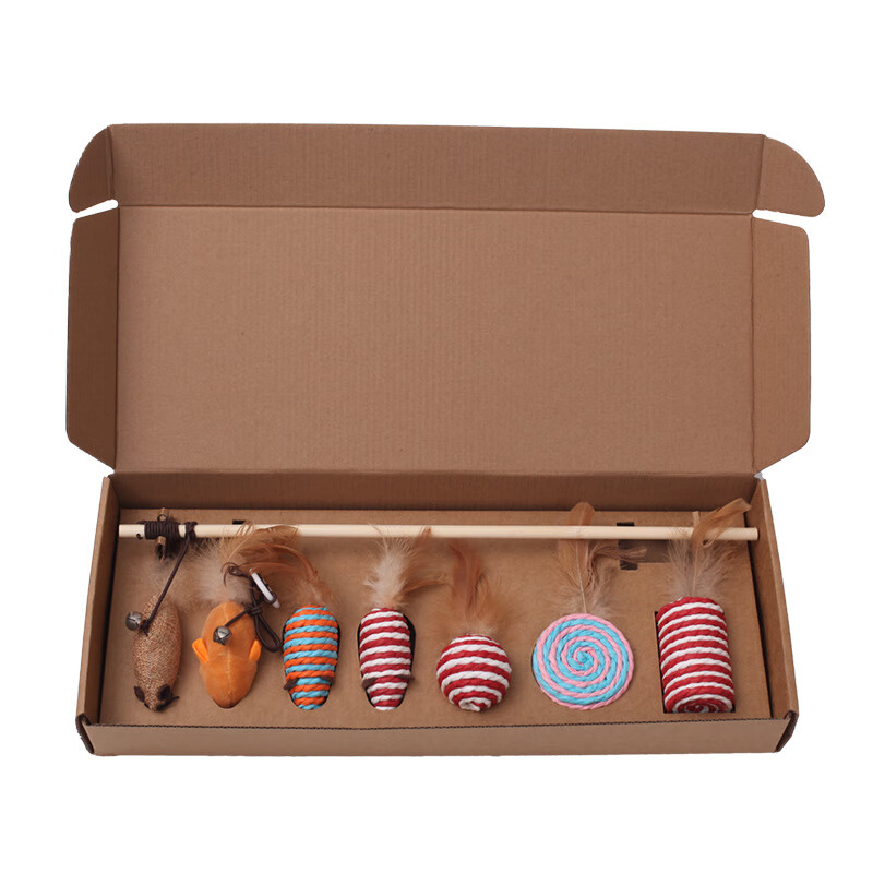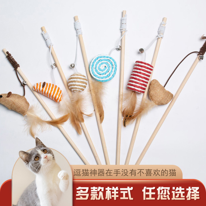大猫日记 猫咪逗猫棒解闷神器自嗨带铃铛幼猫耐咬可伸缩替换头逗猫玩具用品 红白圆球-七件套