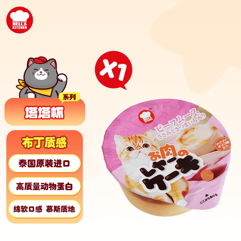 地狱厨房(Hell's Kitchen)泰国进口塔塔杯成猫零食猫肉酱肉泥【保质期6个月介意慎拍】 牛肉