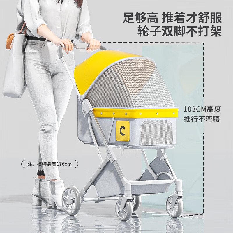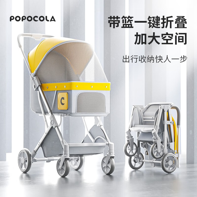 POPOCOLA轻便狗狗手推车可折叠宠物猫咪外出遛狗婴儿老年柯基中小型犬 超大坐栏 一键收车