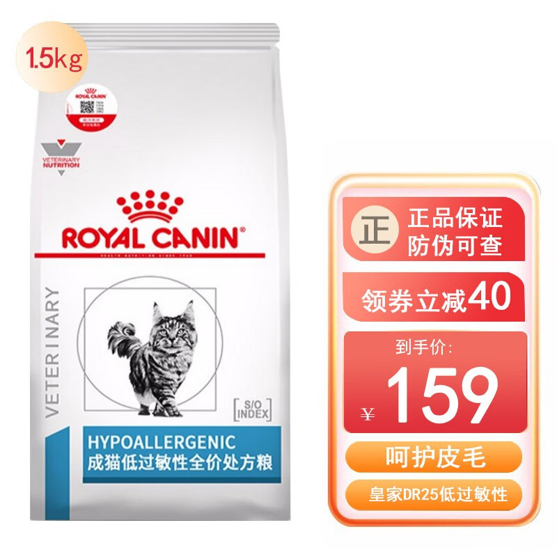 贵族猫粮成猫低过敏性处方粮DR25猫咪皮肤低敏调理猫主食 低过敏成猫DR25/1.5kg*1