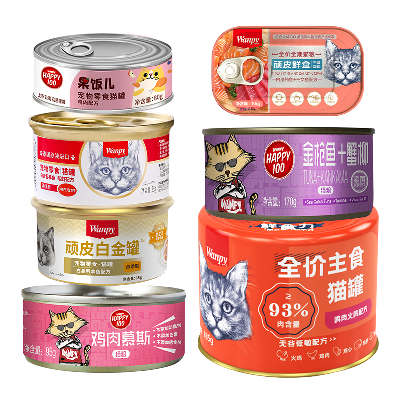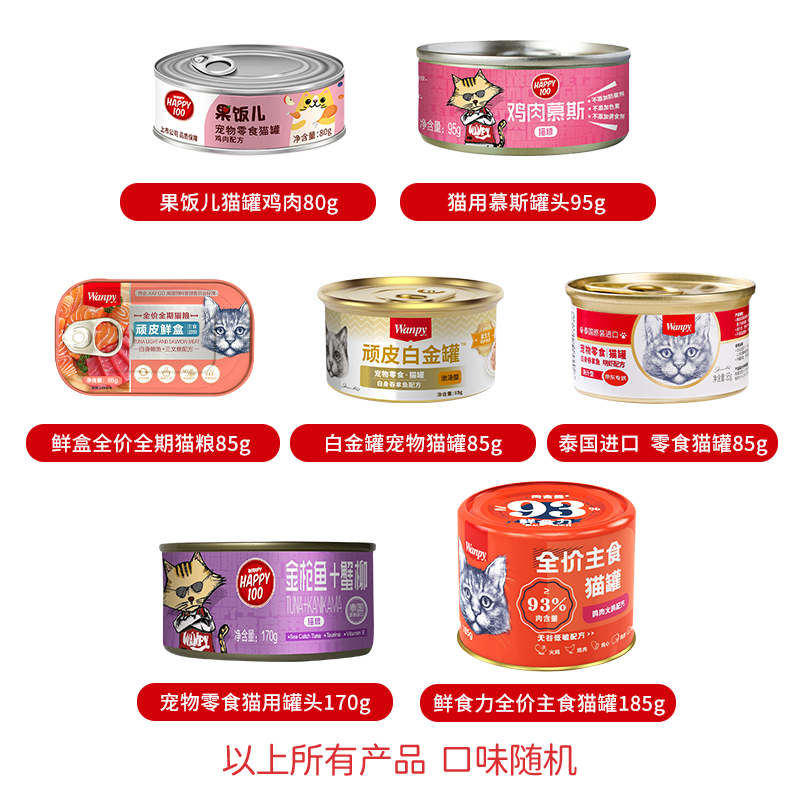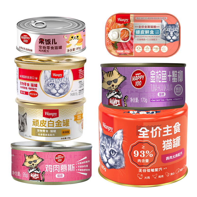 顽皮wanpy猫罐大集合 猫罐头大集合【主食罐*2 零食罐*5】