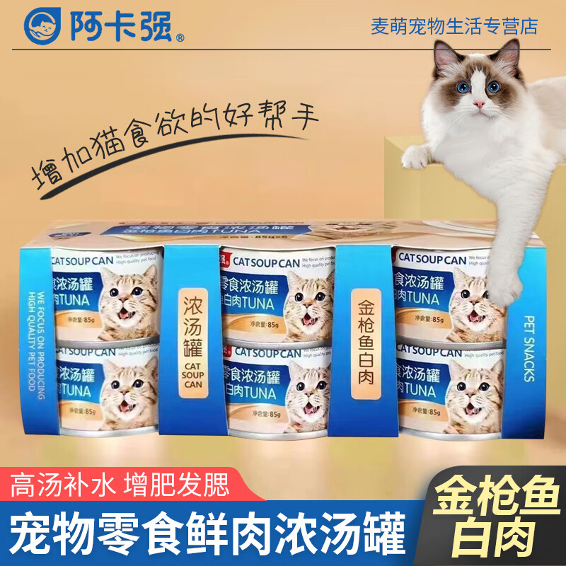 阿卡强猫罐头浓汤罐宠物猫零食补水成猫全阶段主食湿粮白肉营养增肥发腮 金枪鱼 白肉口味95g*6罐