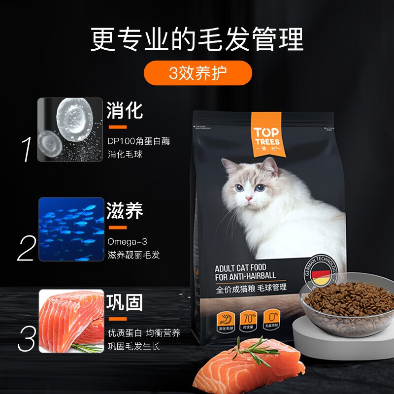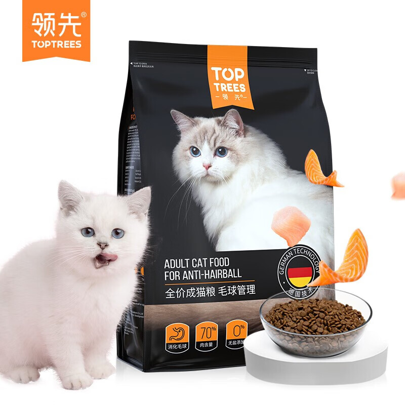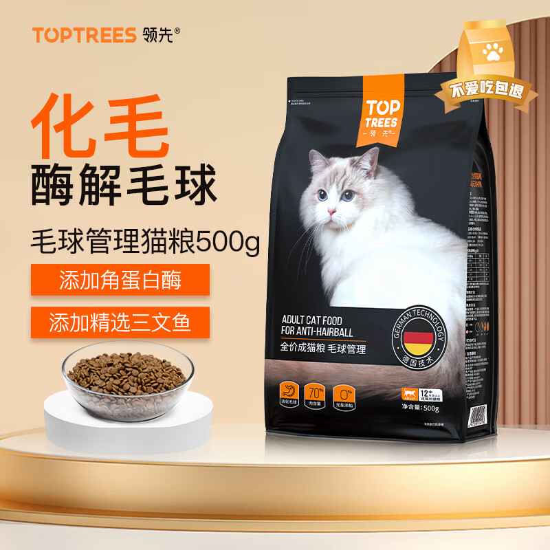 领先( Toptrees)宠物猫粮 成猫猫粮 毛球管理 无谷低敏天然 500g