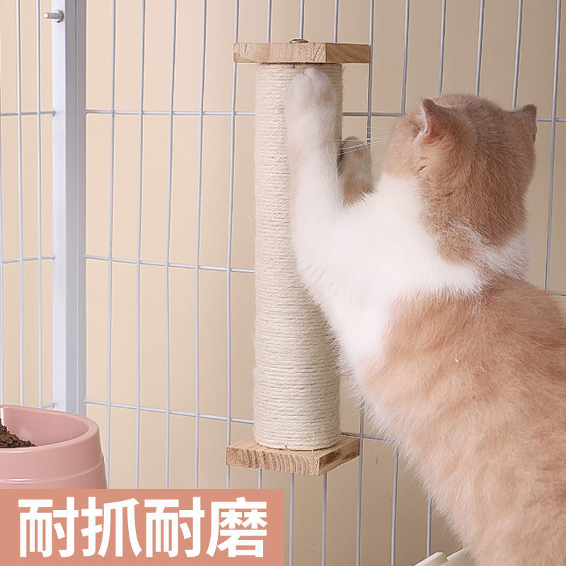 猫抓柱猫笼猫咪磨爪蹭痒神器剑麻柱立式猫抓板耐磨麻绳柱猫咪玩具 30cm剑麻柱 实木配件