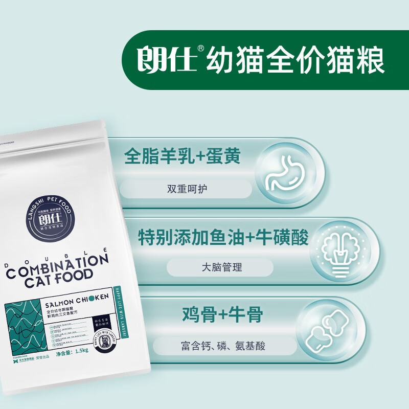 朗仕 猫粮 鲜肉天然粮 幼猫专用 离乳期奶糕粮 布偶猫英短蓝猫 1.5kg