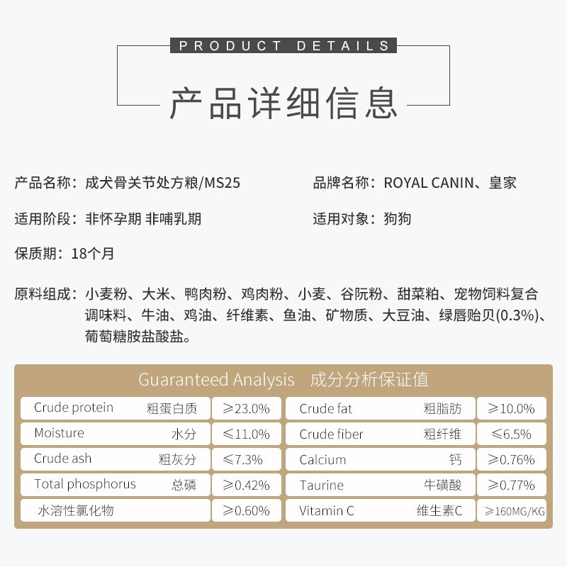皇家处方狗粮 成犬骨关节处方粮MS25 呵护修复关节维持体重促进骨骼增长1.5kg/7kg 成犬骨关节处方粮MS25/1.5kg