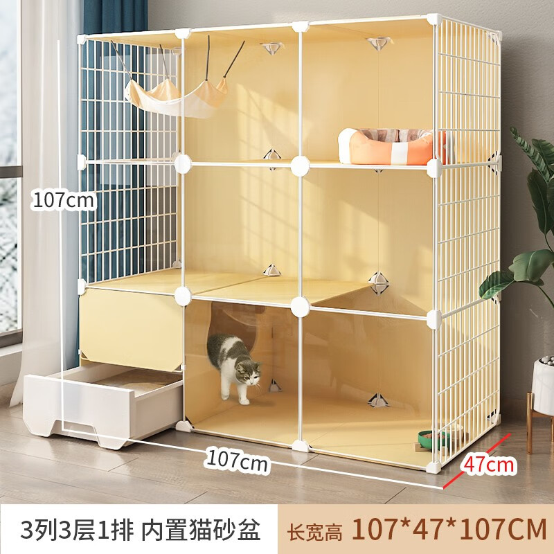 宠趣汇高清透明猫笼子大号带厕所一体自带封闭式猫砂盆宠物家用猫笼猫柜 高清透明【107*47*107】原木色 吃喝玩乐:自带续水猫碗 瞄舍款
