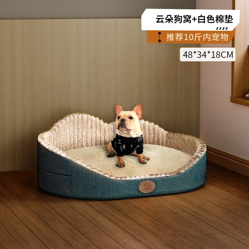 宠趣汇狗窝冬季保暖可拆洗四季通用睡觉用狗垫子耐咬秋冬天泰迪小型犬 小号宝蓝色 耐咬狗窝 保暖棉垫
