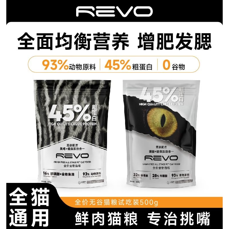 山头林村REVO谷冻干绒鲜肉乳鸽全价猫咪猫粮高蛋白成年猫幼猫通用猫粮定制 美毛健体 尝鲜1斤(一袋)