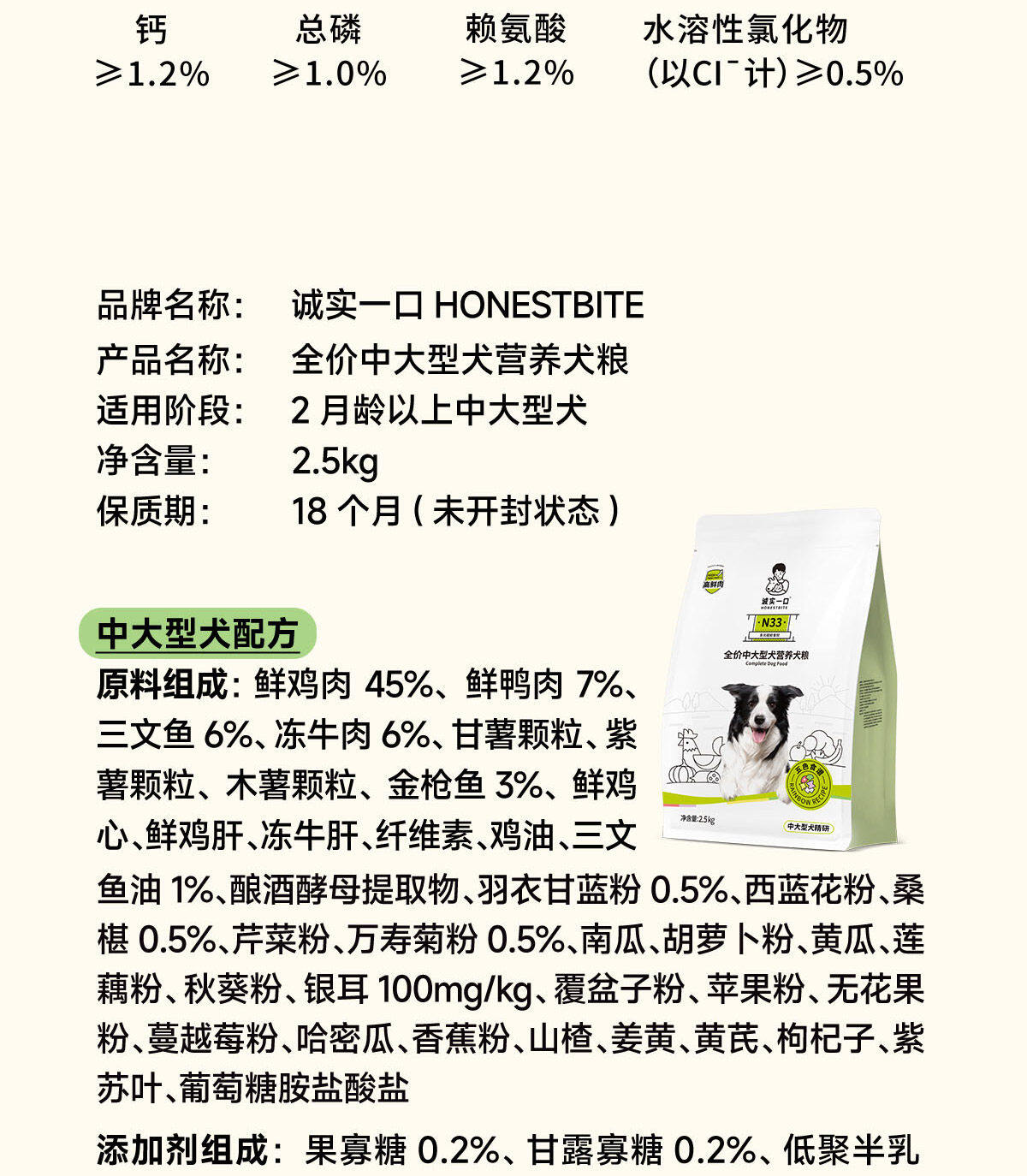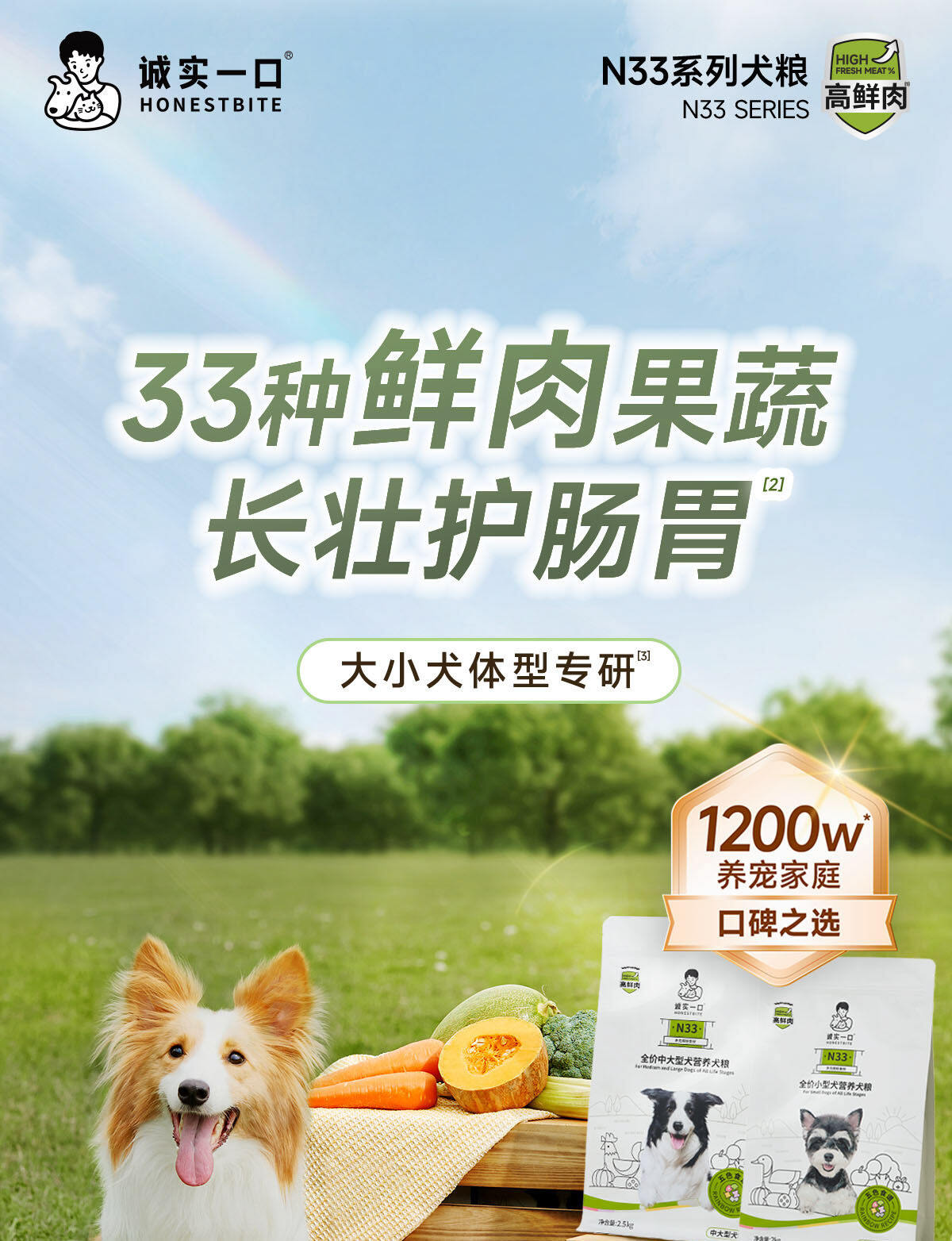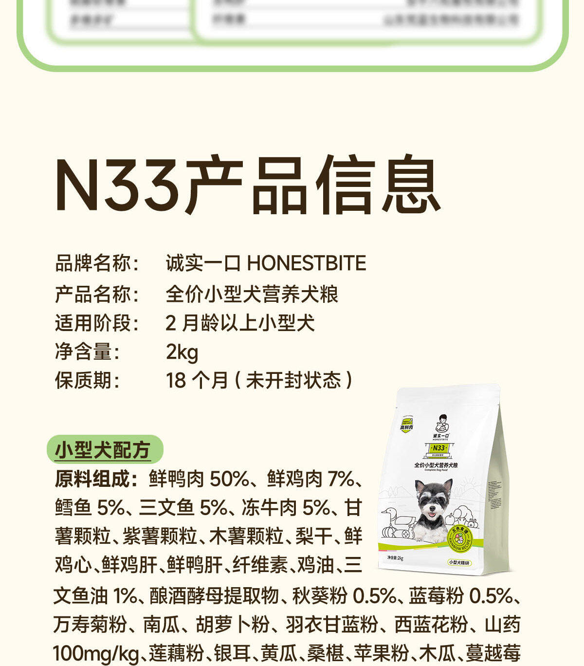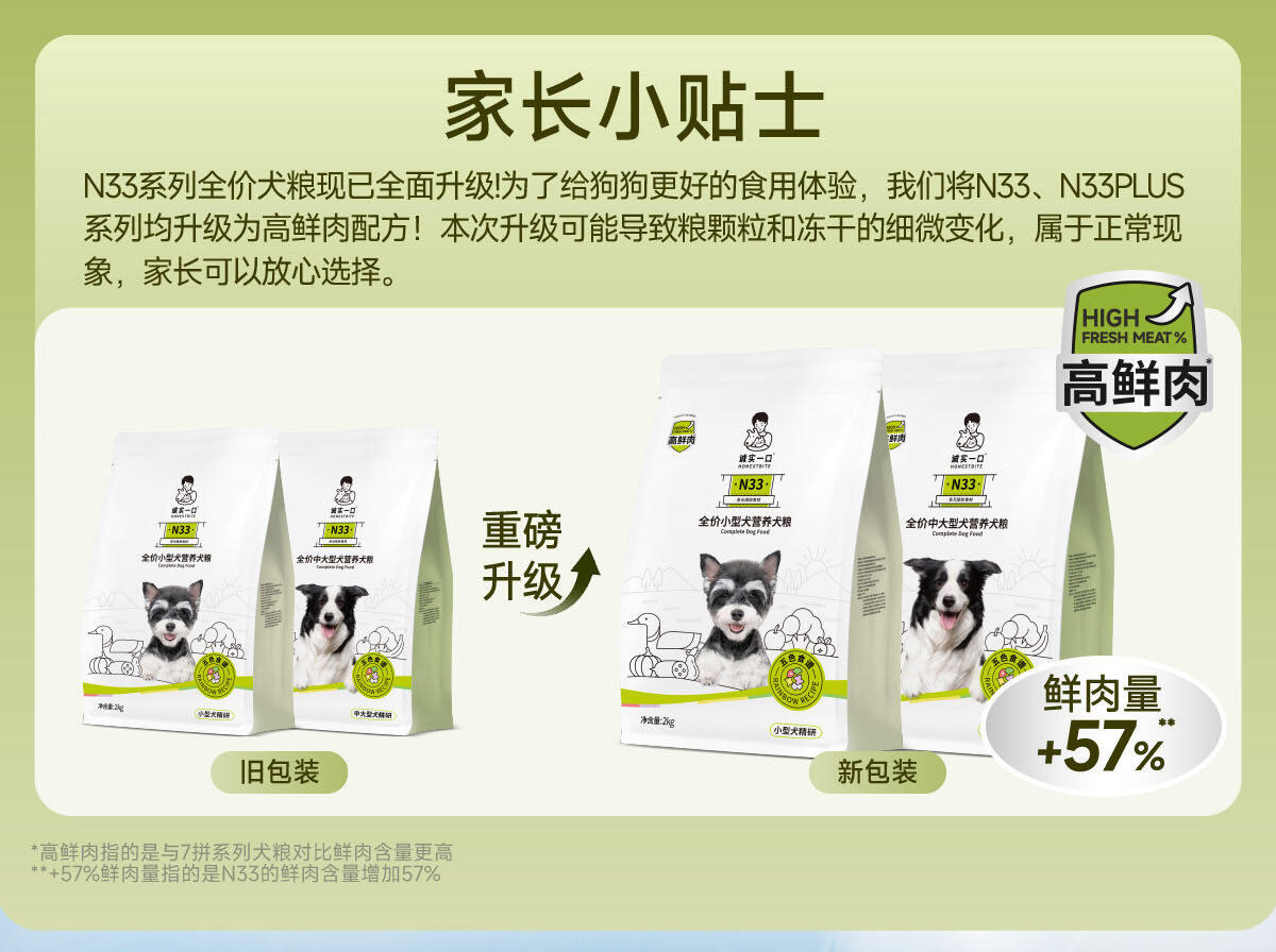 【临期特惠】诚实一口 N33全阶段全价无谷犬粮40g/2kg/2.5kg