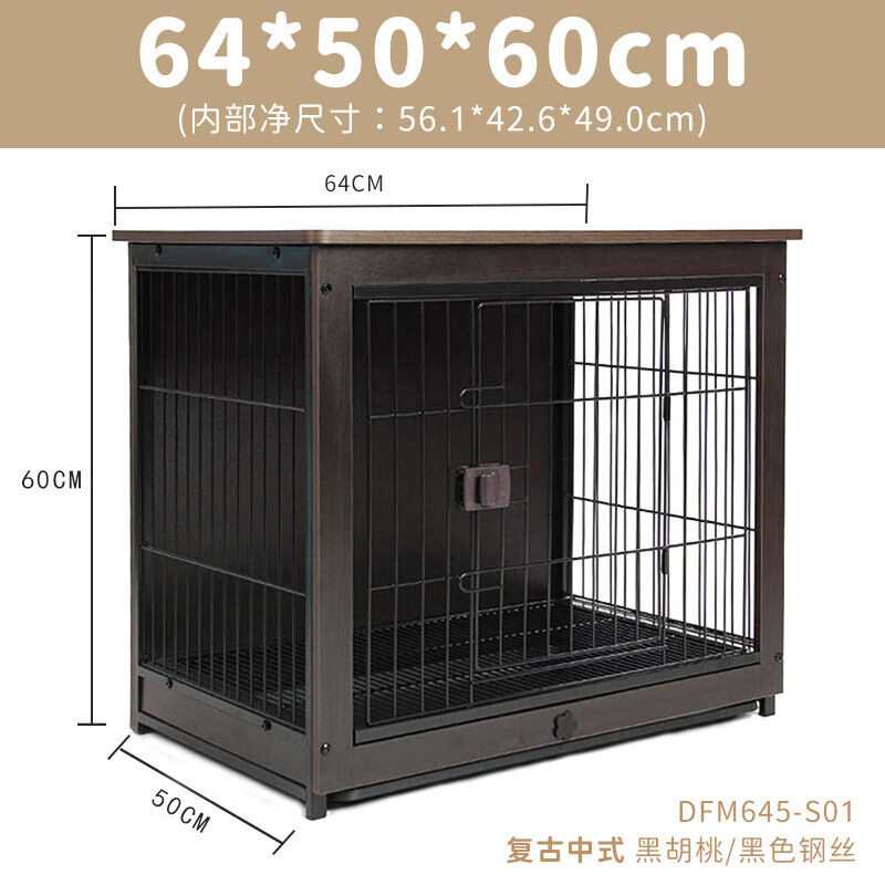 小米城堡木质狗笼 宠物笼狗窝家用大中小号家具室内狗别墅围栏购物猫笼兔 复古中式(有顶沿)黑胡桃色/黑色钢丝DFM645- 组装【板材颜色加深】