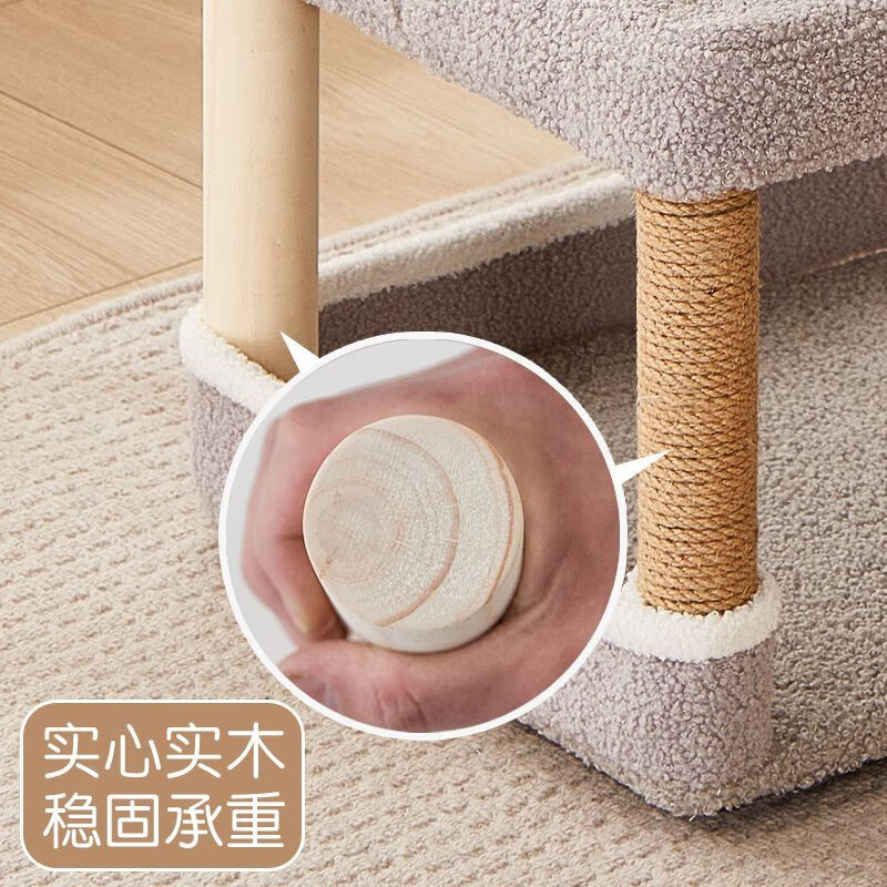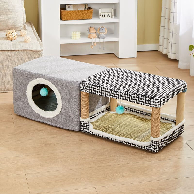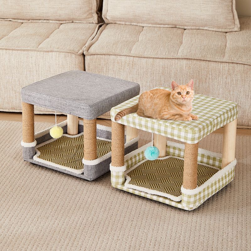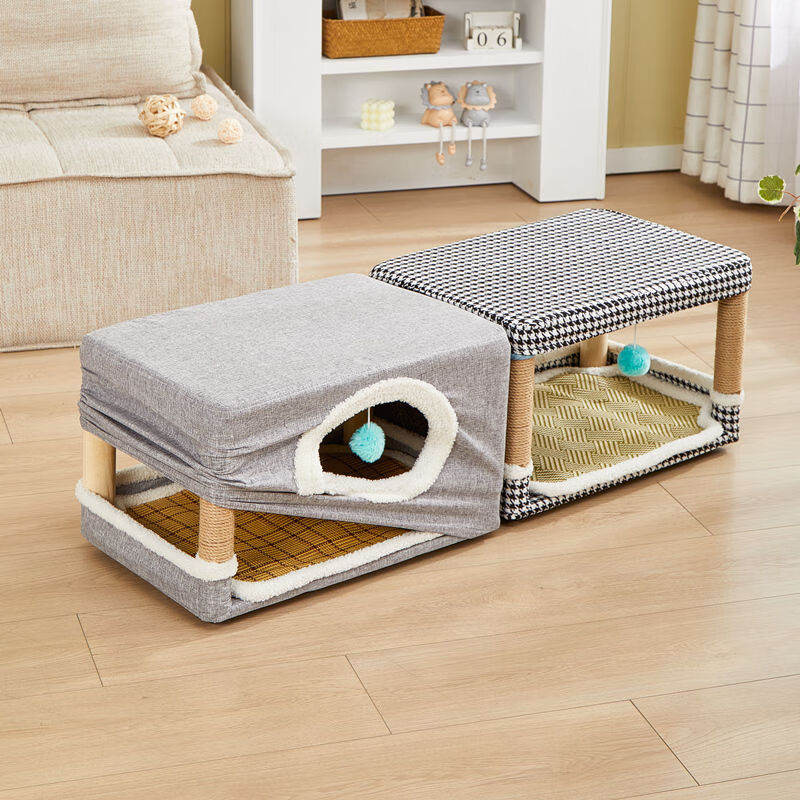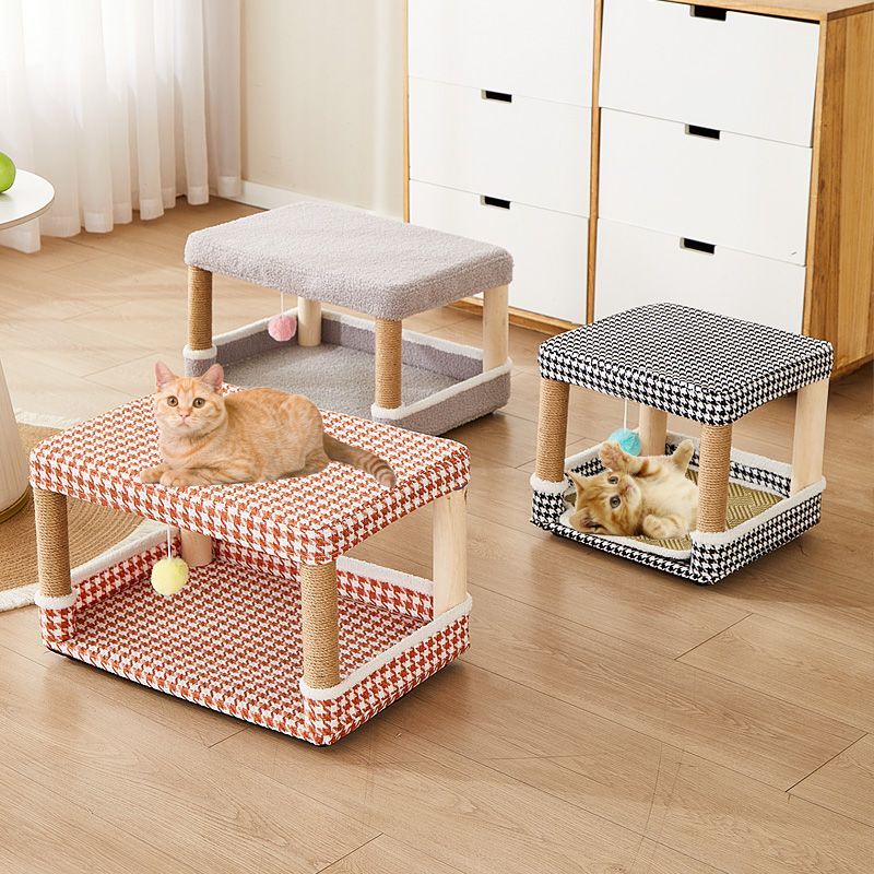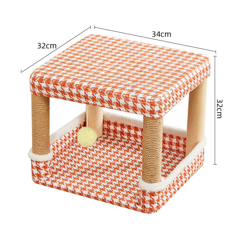 夏窝凳子猫爬架一体四季通用立式猫抓板猫跳台磨爪器逗猫玩具 橙千鸟格加大送凉席棉垫(正反双用垫) 实木凳架 棉垫凉席 小座套