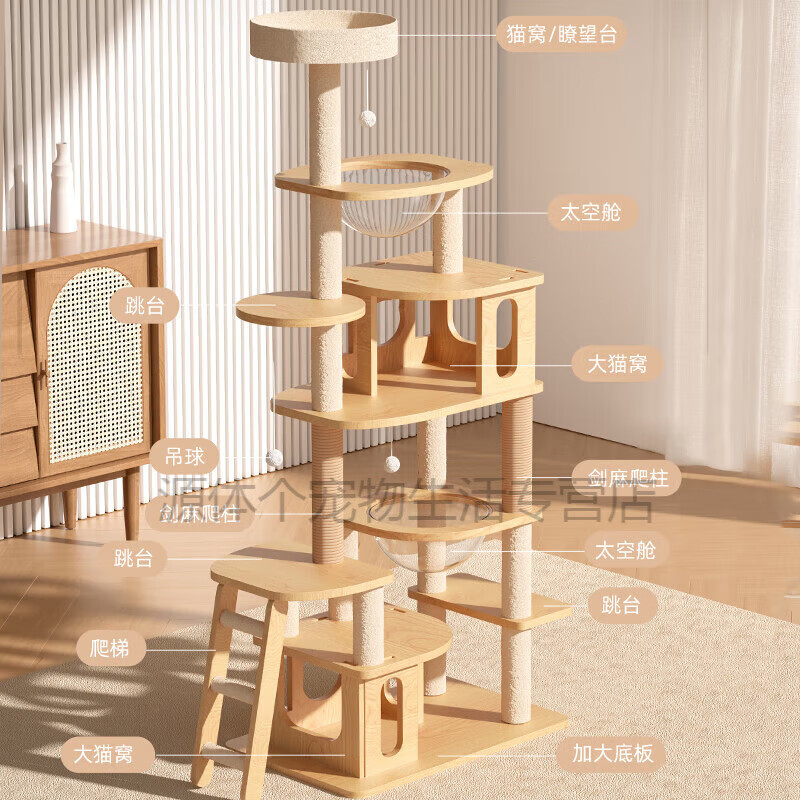 宠袋猫爬架猫窝猫树一体实木猫架子通天柱太空舱剑麻玩具猫咪用品 喵尼卡MNK1