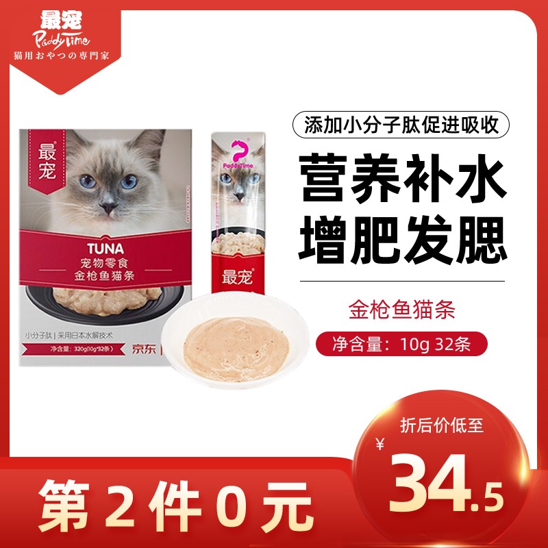 澳洲品牌 最宠(Paddy Time)猫条猫零食猫咪湿粮幼猫猫条发腮营养流质食品猫罐头增肥肉泥猫粮 金枪鱼猫条10g*32