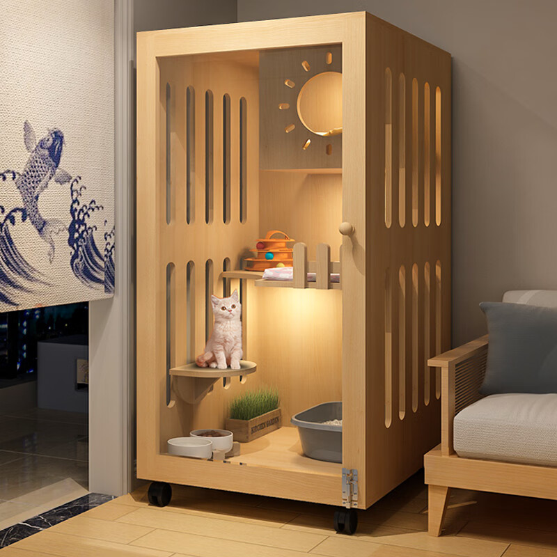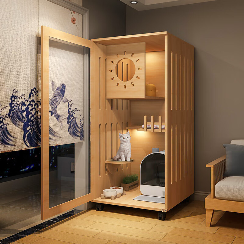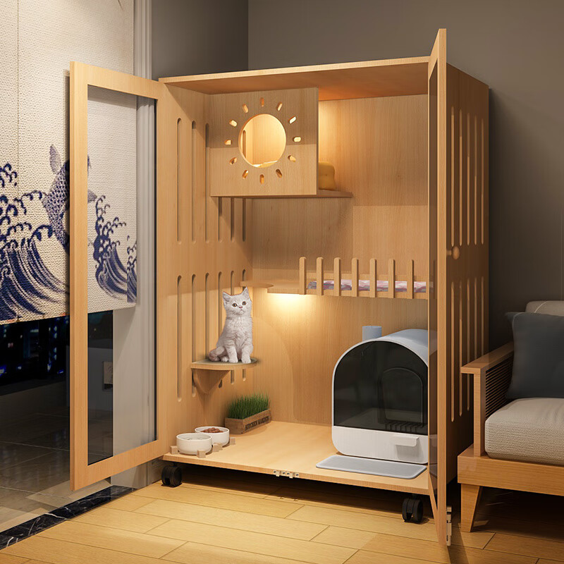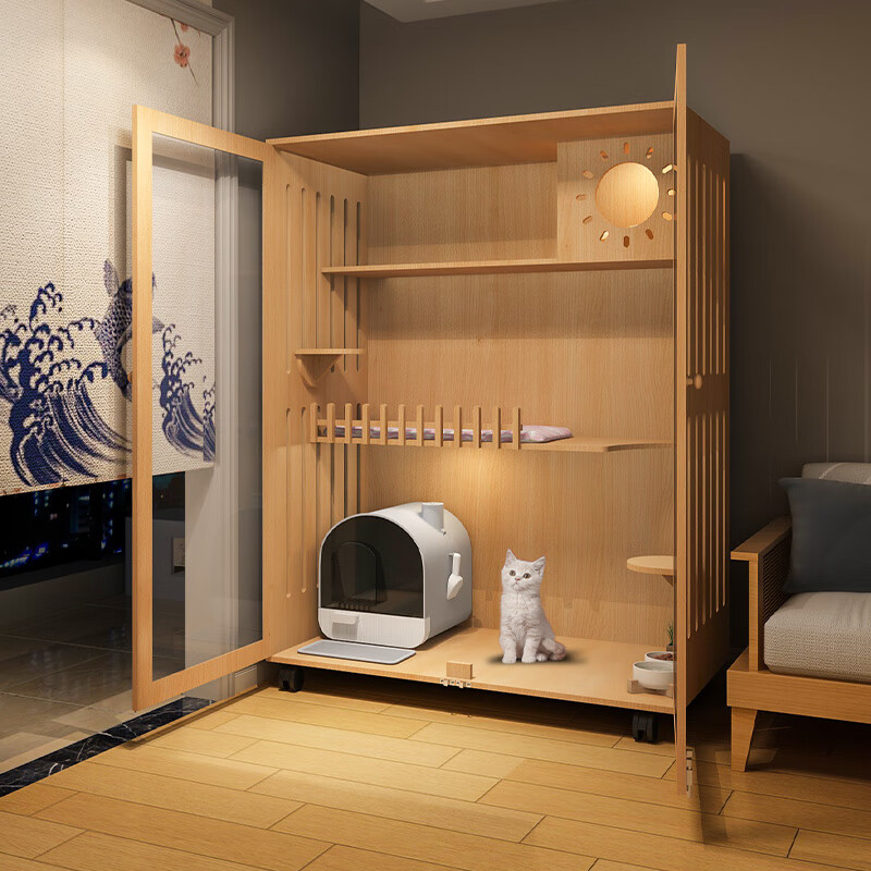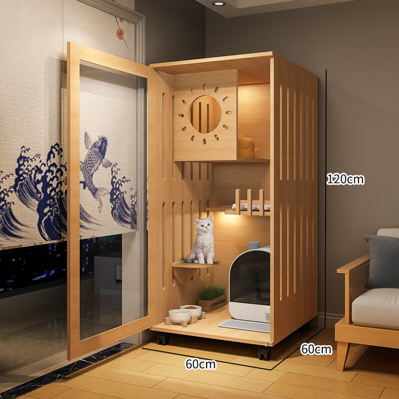 小米城堡猫柜 木质猫笼双猫 木质猫别墅猫咪笼子家用室内超大自由空间猫舍 60*60*120【6个月内小猫】 【自己安装】